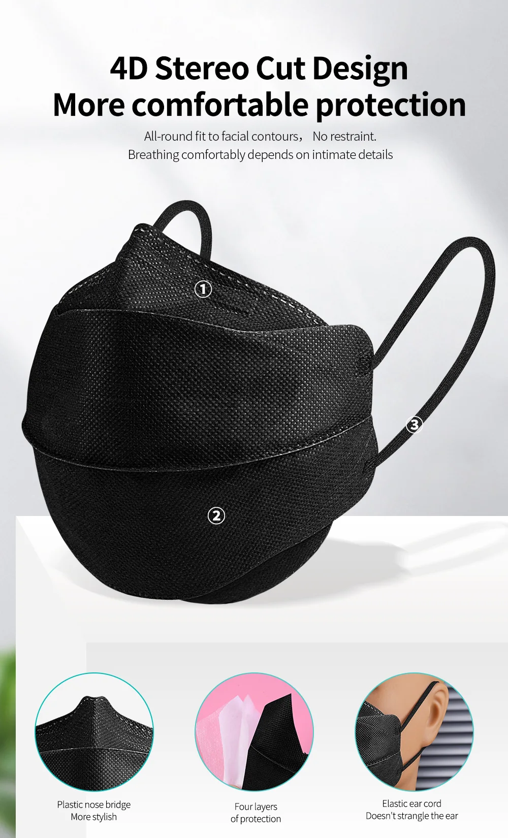 4D CE Mascarillas FPP2 Homologada маска KN95 маски 4 слоя маска для рта многоразовая ffp2Mask черная маска защитная маска