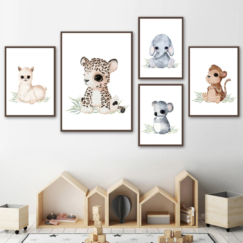 Милый слон жираф медведь панда Лев Ванна настенный художественный П...
