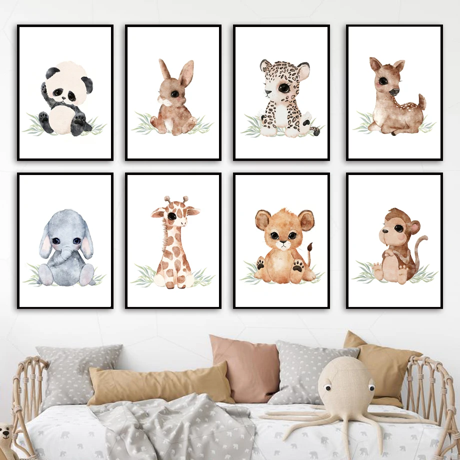 Олень лиса медведь Зебра Панда Сова Лев детская настенная Картина н...