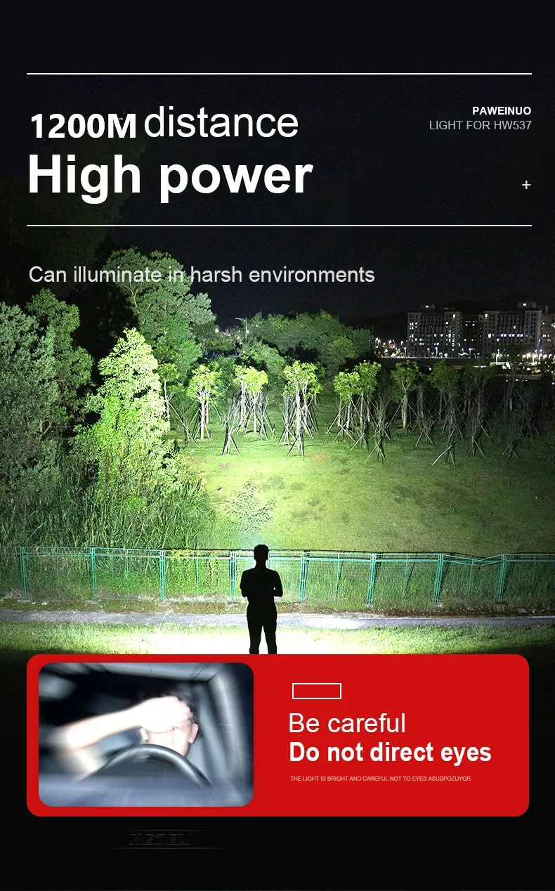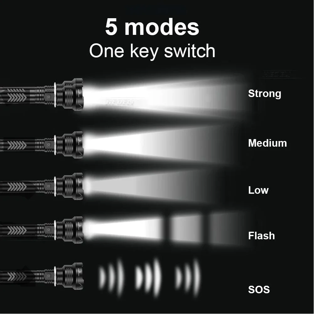 ♦Используйте новейсветодиодный XHP160.2 для максимальной выходной мощности.♦5 передач, Переключение режима света по желанию, различные передачи принесут вам различные впечатления.♦Наружное двойное назначение, вход и выход USB, зарядка USB Type-c, отображение в реальном времени, Предупреждение о низком заряде батареи, может использоваться в качестве фонарика и аварийного источника питания.♦Может похвастаться пиковой интенсивностью луча 850000lm и дальностью броска до 800-1200 метров.♦Используйте перезаряжаемый аккумулятор 18650 или 26650 (супер-аккумулятор большой емкости, более прочный, чем обычный аккумулятор), емкость аккумулятора может достигать 8200 мАч.♦Изготовлен из надежного алюминиевого сплава класса aero HAIII военного класса с твердым анодированием.♦Водонепроницаемость соответствует IPX-6, водонепроницаемость, можно использовать в дождливую погоду, но нельзя класть в воду.♦Подходит для работы, охоты, альпинизма, рыбалки, кемпинга и активного отдыха и т. д.