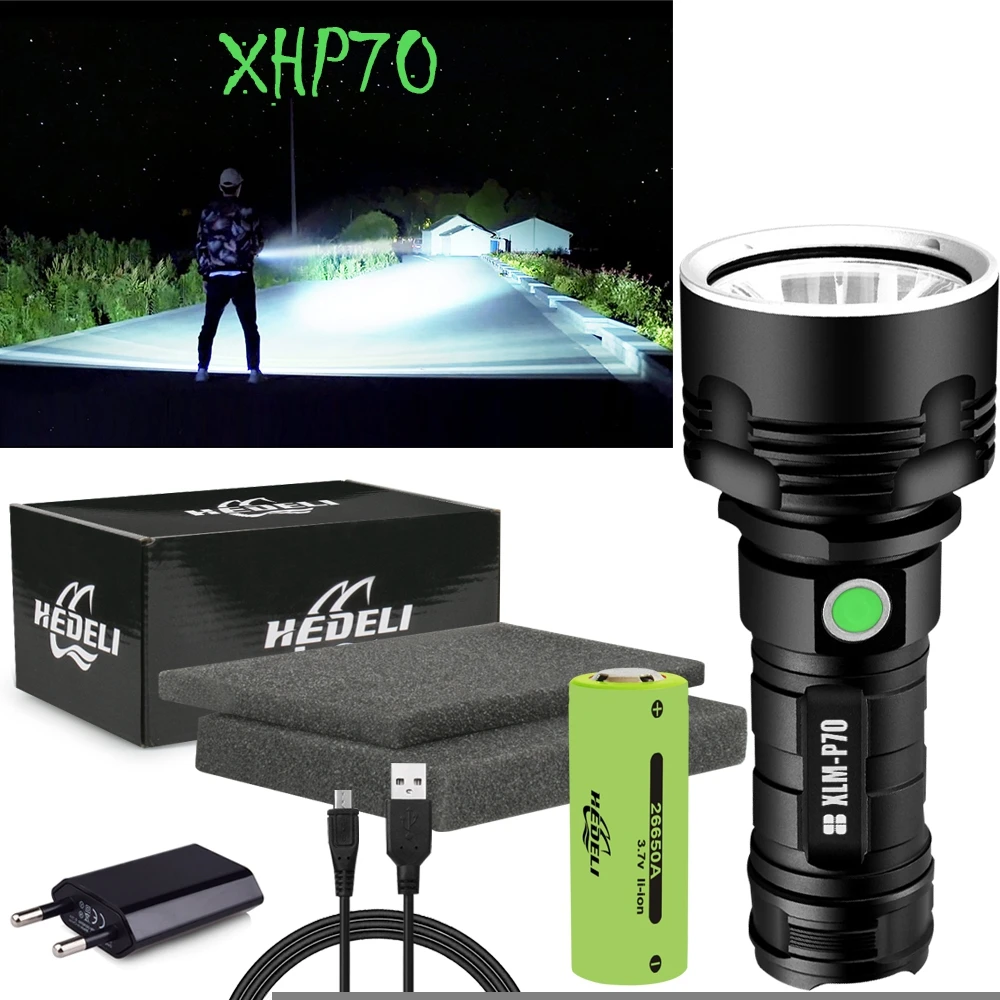 Самый мощный светодиодный ффонарь XHP160.2, тактическая вспышка высокой мощности с зарядным устройством типа C и перезаряжаемым светильник онариком 18650