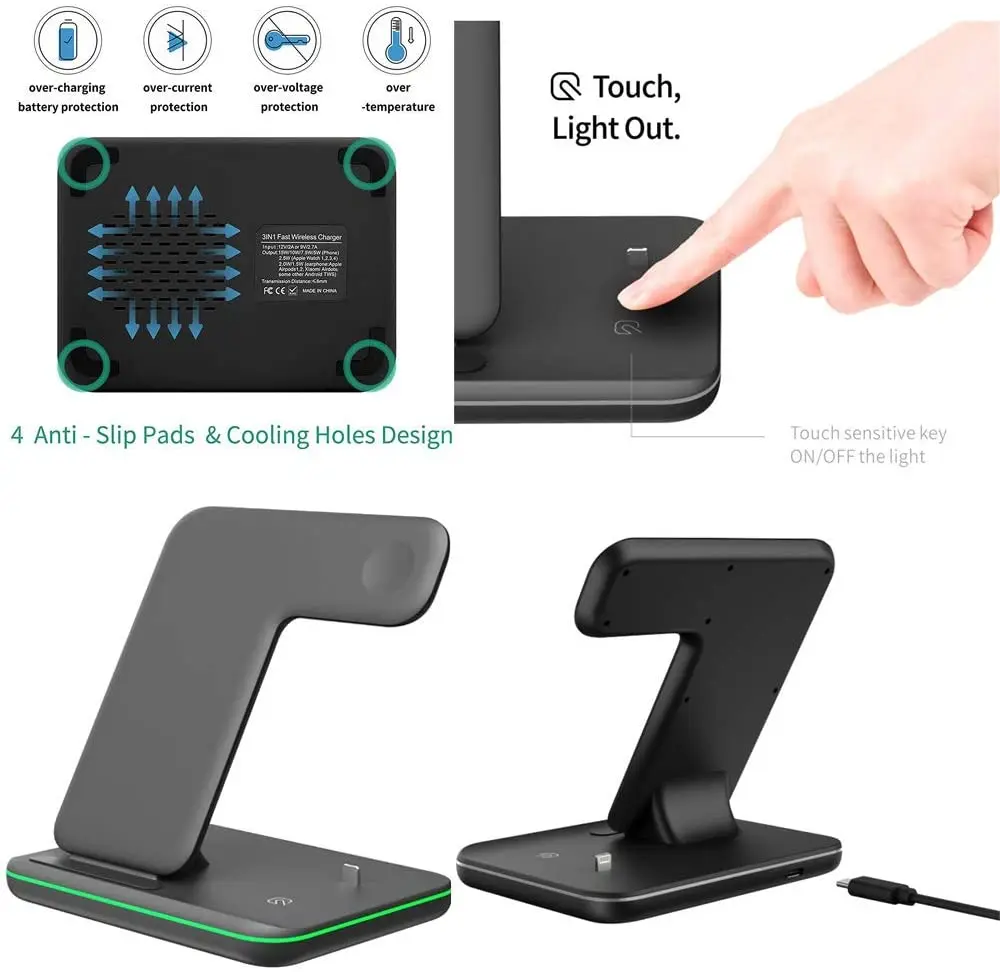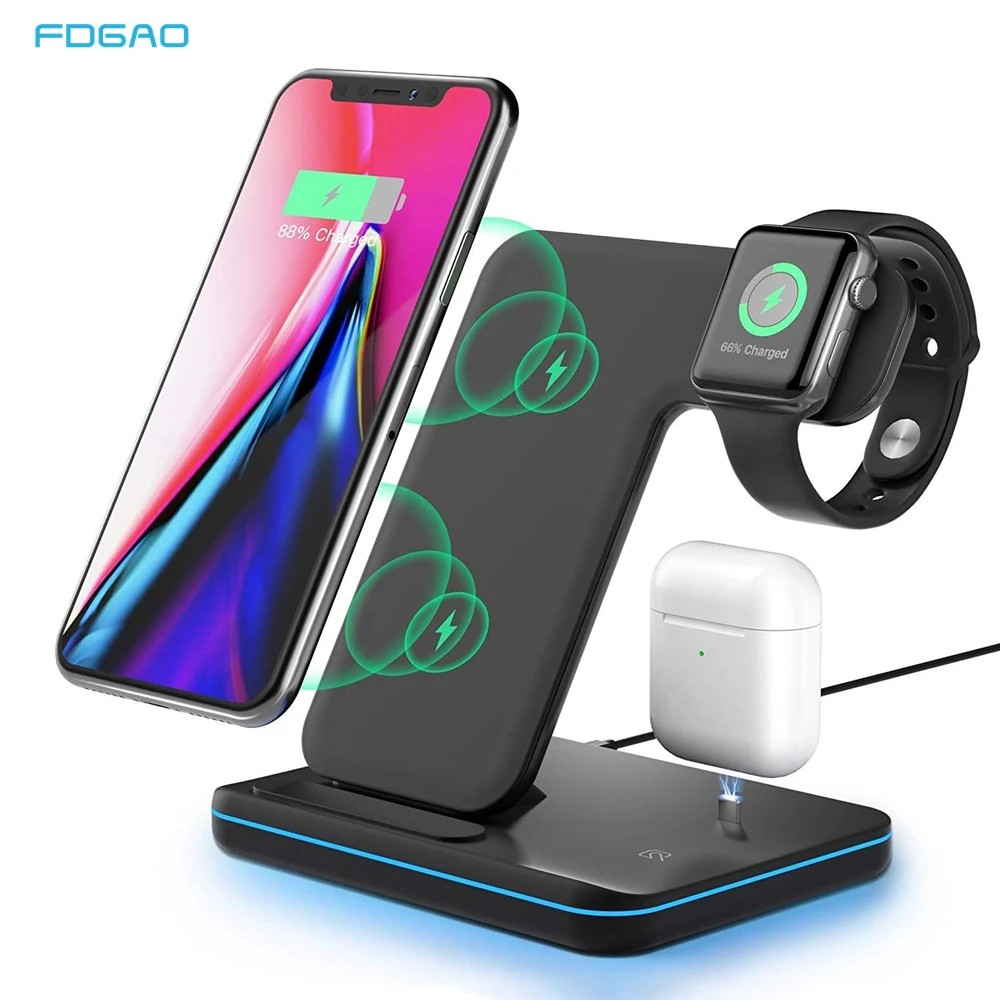 【 3 в 1 Беспроводное зарядное устройство Дизайн 3 в 1 беспроводная зарядная станция может заряжать ваш телефон/Apple Watch серии 6/SE/5/4/3/2/AirPods одновременно, многофункциональный дизайн обеспечивает аккуратную зарядную подставку. Беспроводное зарядное устройство 3 в 1 требует только 1 зарядный кабель сделает вашу комнату или стол более простым и аккуратным, так что ваша жизнь будет более удобной.