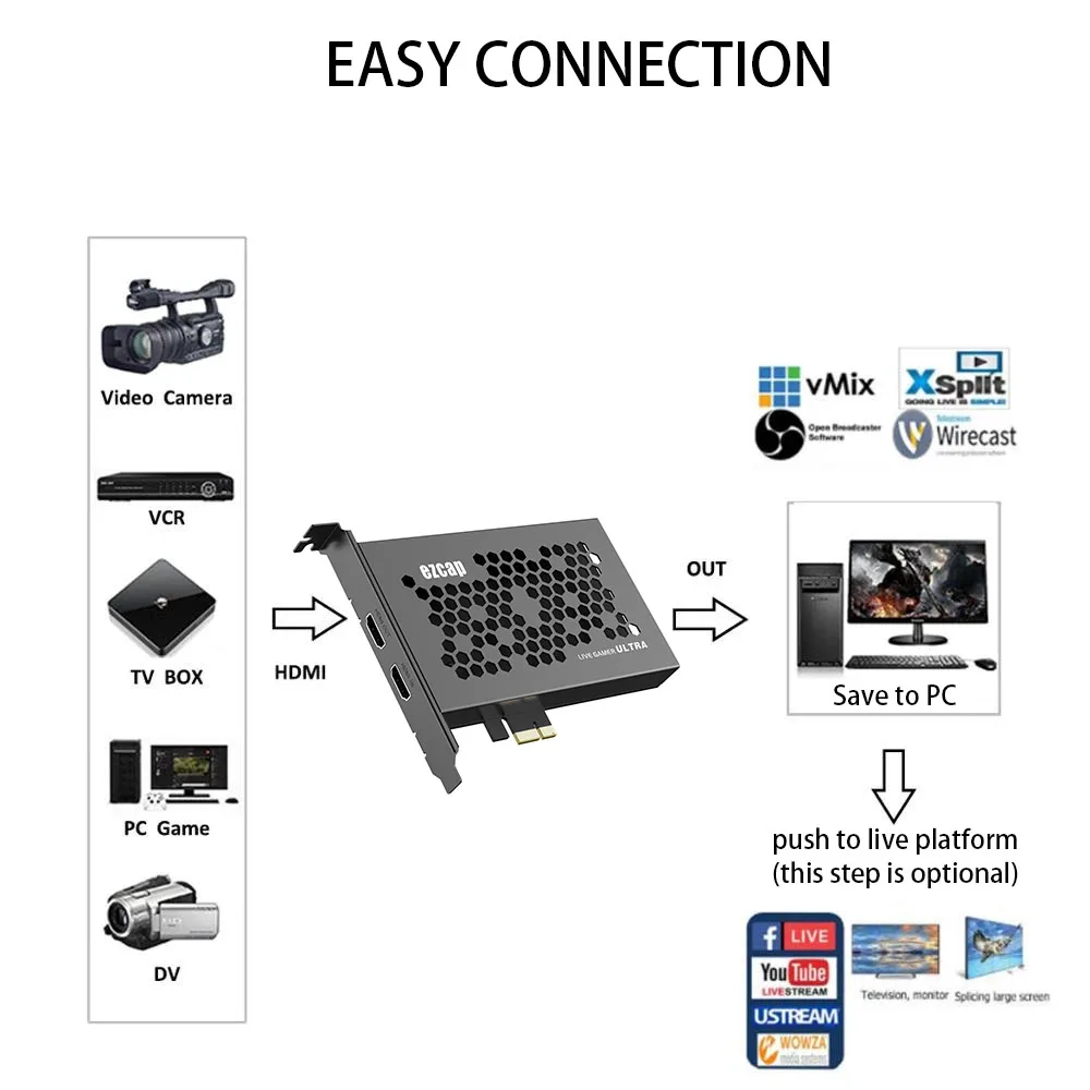 Ezcap323 HDMI петля захвата видео карты 4k 60fps HDR PCIE видео игры ТВ тюнер запись для PS4 переключатель камеры, ПК прямой трансляции