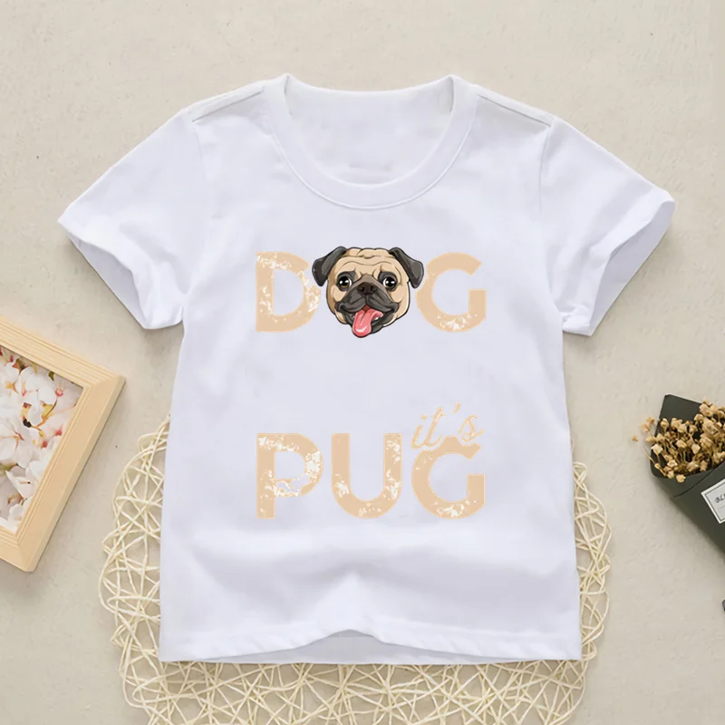 Забавная футболка для девочек и мальчиков, крутая футболка с рисунком мопса, роликов и животных, кавайная детская одежда, летняя футболка с собакой, YKP011