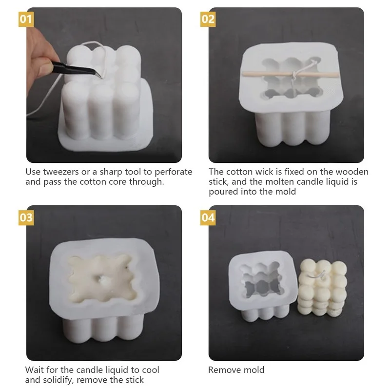 Характеристики продукта:1. Силиконовый материал: Форма изготовлена из силикона и может выдерживать высокие и низкие температуры.2. Прочная форма: ее можно повторно использовать много раз, поэтому форма прочная, не легко повреждена и треснута.3. Длительный срок службы: форма имеет длительный срок службы и легко чистится.4. Широкое использование: можно использовать d при производстве парафина, воска и свечей из пчелиного воска.