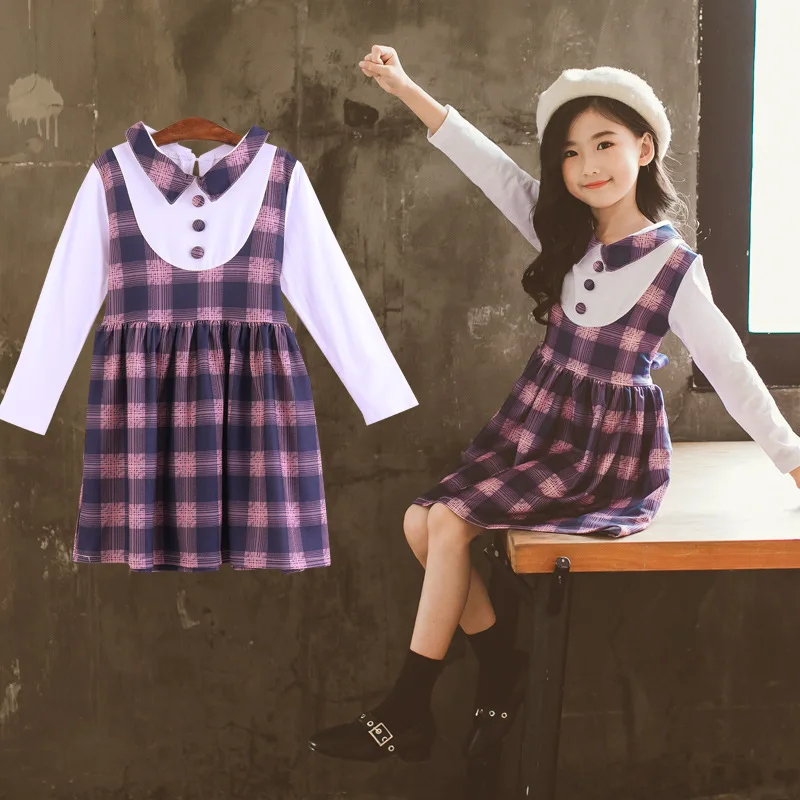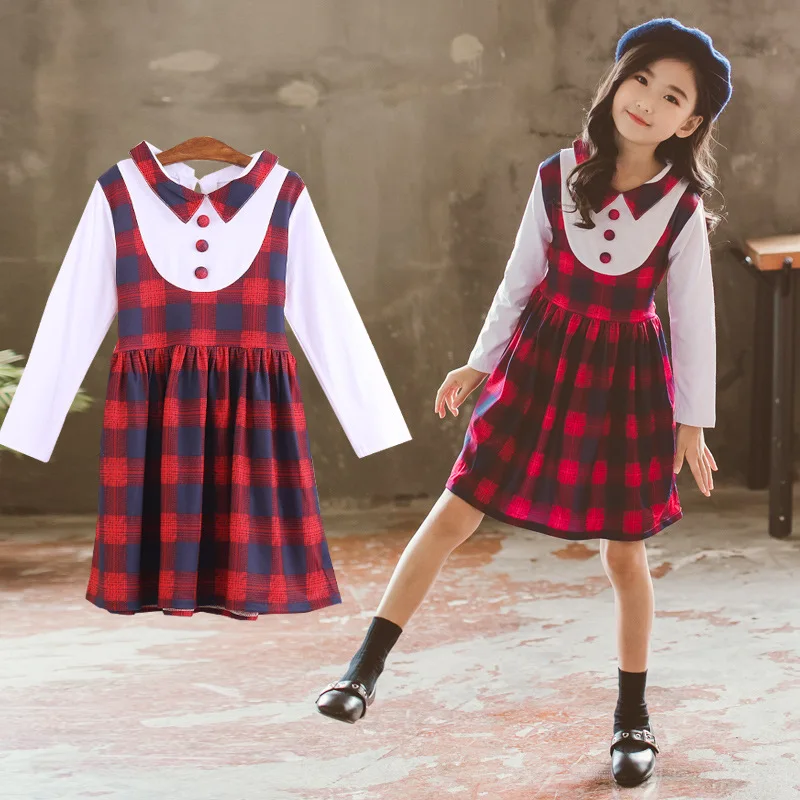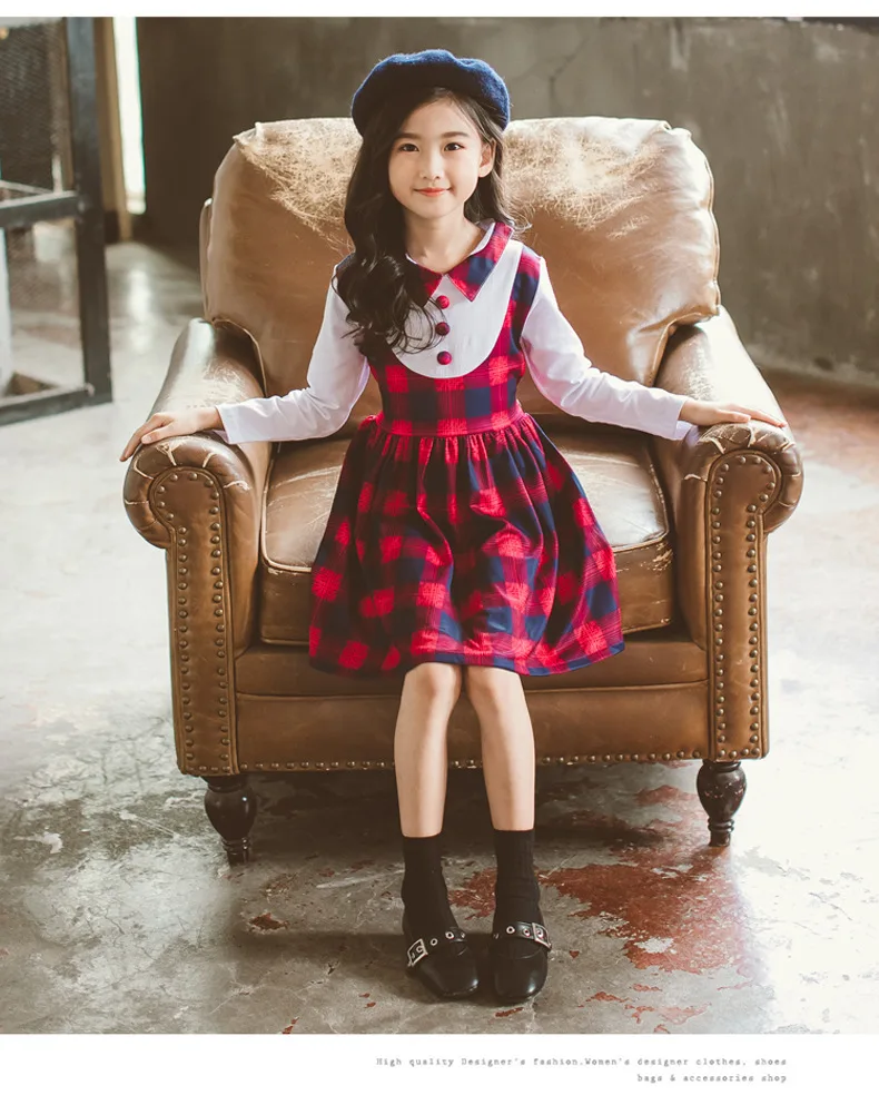 2021 Элегантные платья для девочки, Повседневная рубашка в клетку с длинным рукавом платье Мода для подростков, хлопковая блуза-платье От 4 до 13 лет