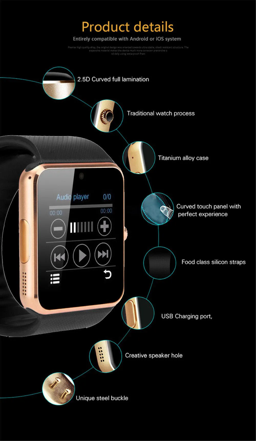 Смарт-часы GT0818 Plus, подключаемые к мужскому телефону Android