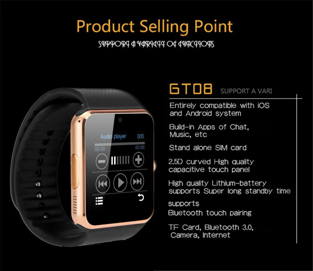 Смарт-часы GT08 Plus, подключаемые к мужскому устройству, SIM-карта...
