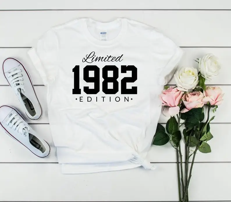 Футболка для дня рождения ограниченного выпуска 1982 года, футболка для дня рождения может быть изготовлена на заказ в течение любого года. Летняя Повседневная рубашка унисекс