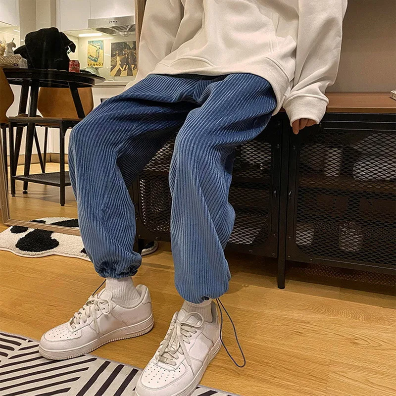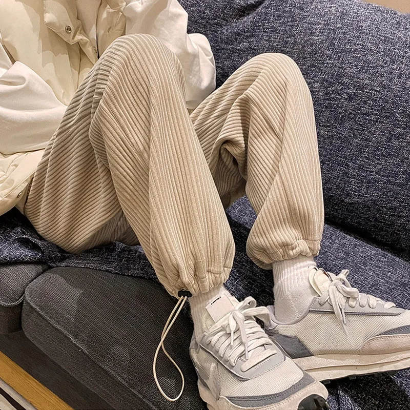 Брюки SHUJIN мужские вельветовые, повседневные Прямые Штаны с завязкой, однотонные, в стиле оверсайз, теплые, уличная одежда в Корейском стиле, 2021