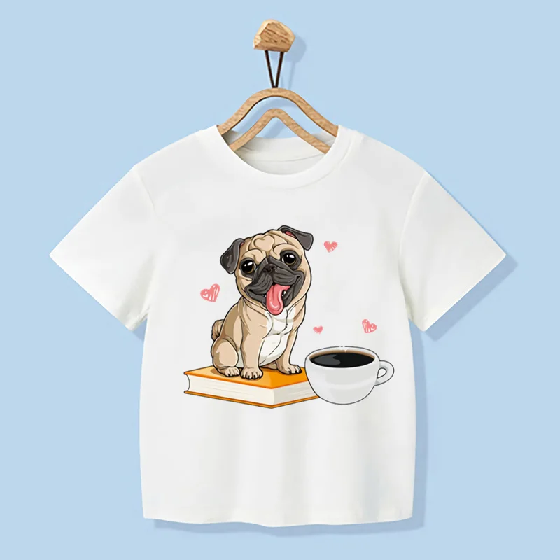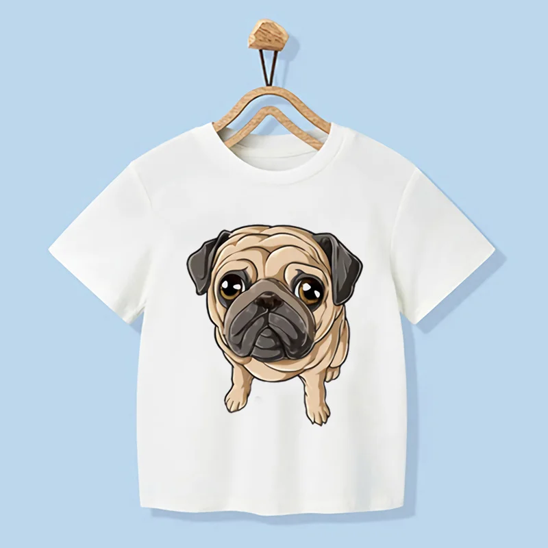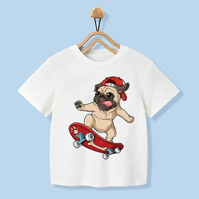 Летняя футболка для девочек и мальчиков, крутая футболка с рисунком мопса, роликов и животных, кавайная детская одежда, смешная футболка с собакой, YKP011