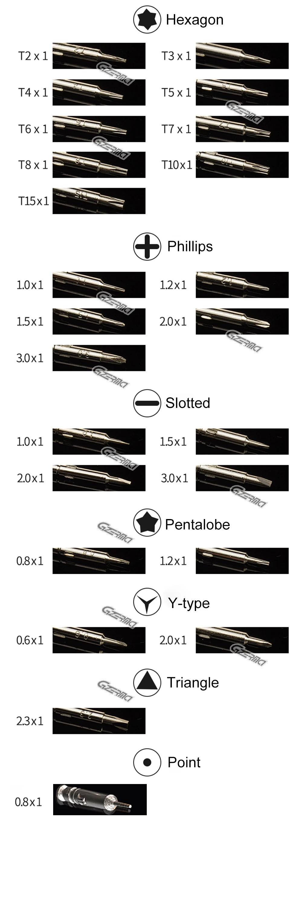 Note:25 in 1 screwdriver set don't contain Y0.6 bit.