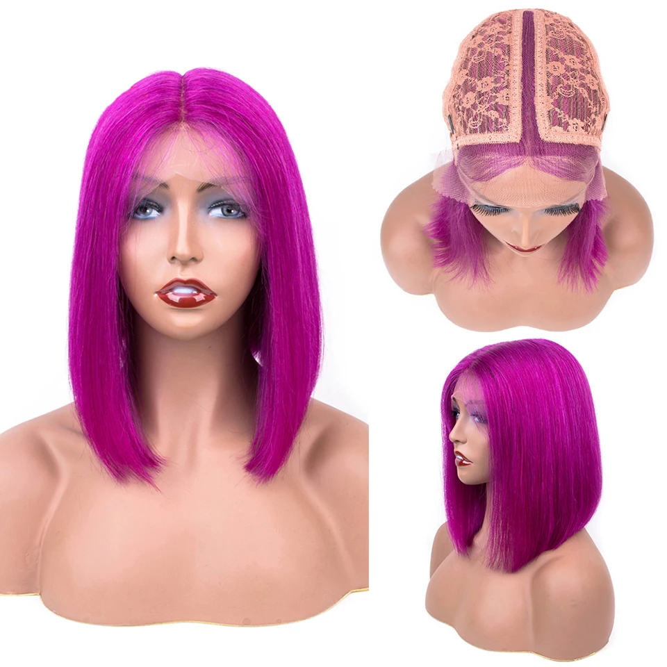 Цветные фиолетовые парики из натуральных волос с кружевом и Бобом, ...