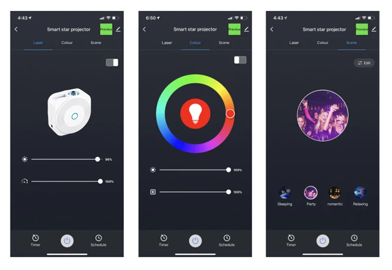 Примечание: опция таймера более энергоэффективна, никогда не беспокойтесь о том, чтобы забыть выключить Звездные прожекторы! Вы можете реализовать функцию синхронизации через приложение в режиме Wi-Fi.