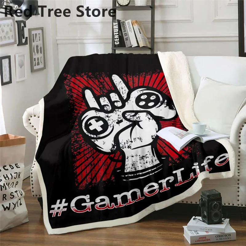 Одеяло из красного шерпы для видеоигр, постельное белье, диван, диван, плюшевый геймпад, плед, игровой плеер, мягкий чехол, подарок для детей, мальчиков и подростков