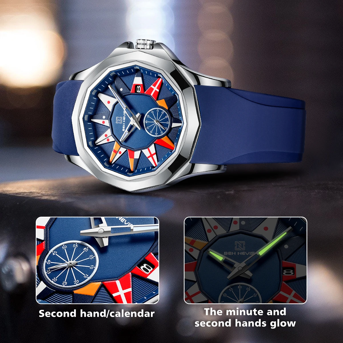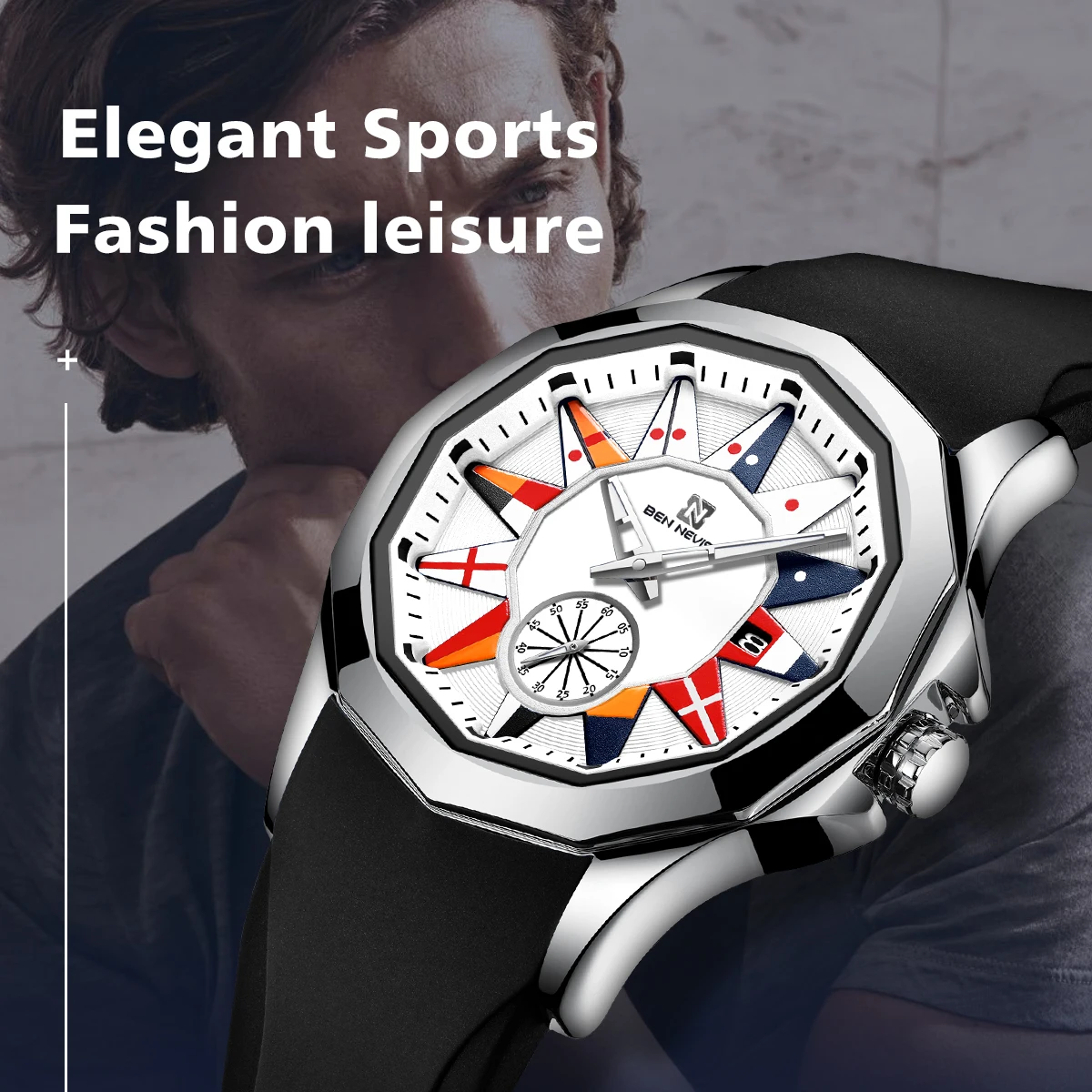 Часы наручные BEN NEVIS Мужские кварцевые с морским флагом, креатив...