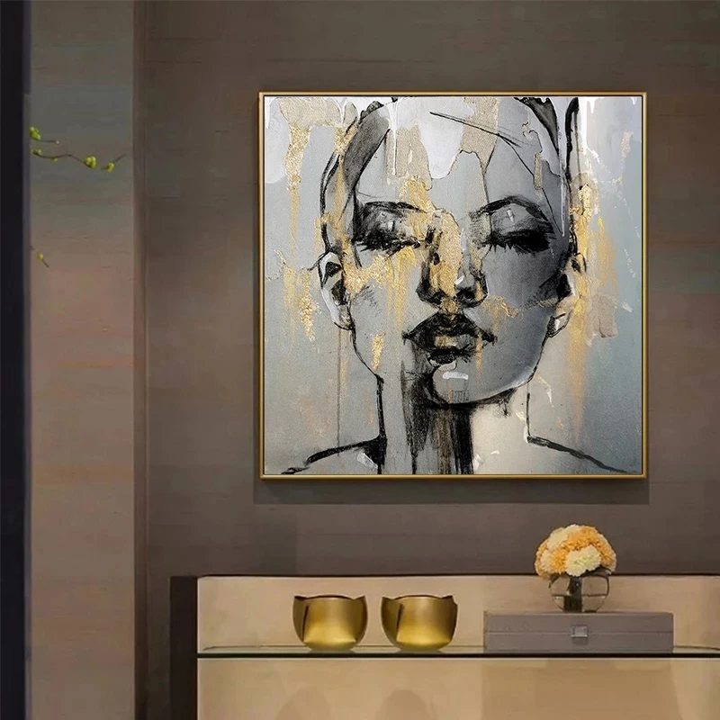 Картина на холсте с изображением Золотой девушки, абстрактная модная женская Настенная картина для декора гостиной