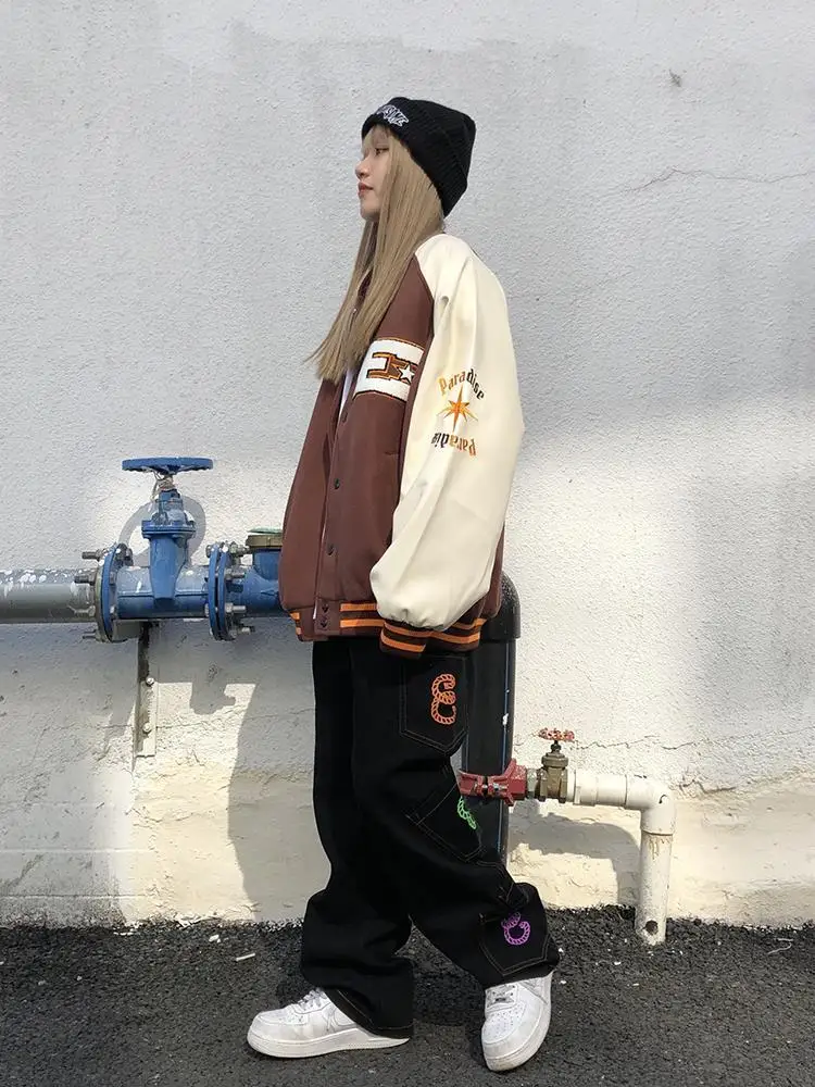 Куртка в стиле Харадзюку, коричневая бейсбольная куртка-бомбер, Жен...