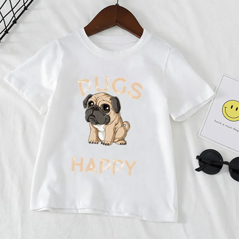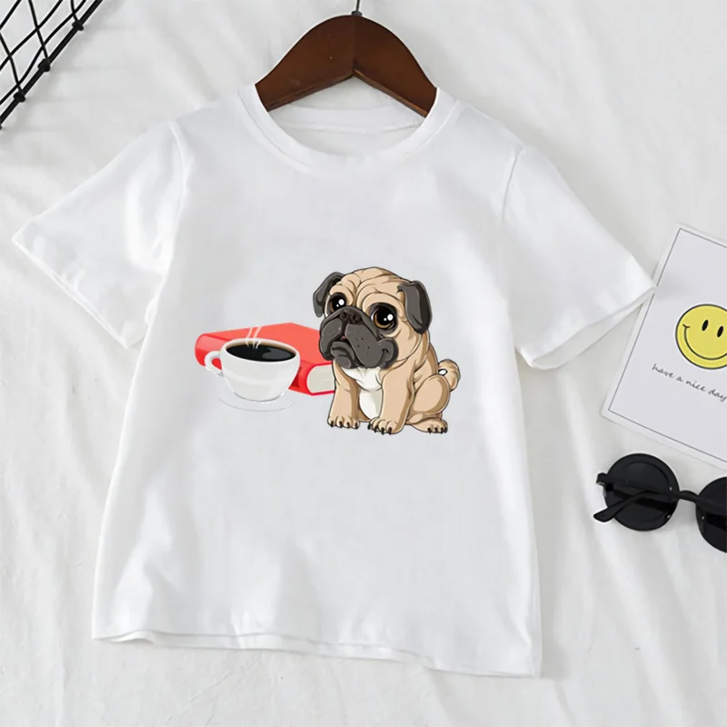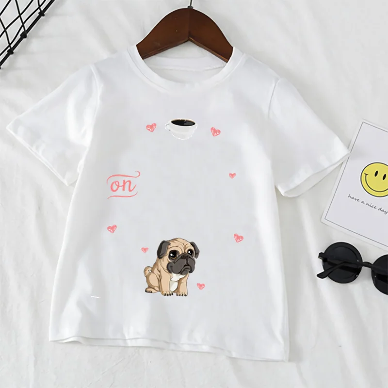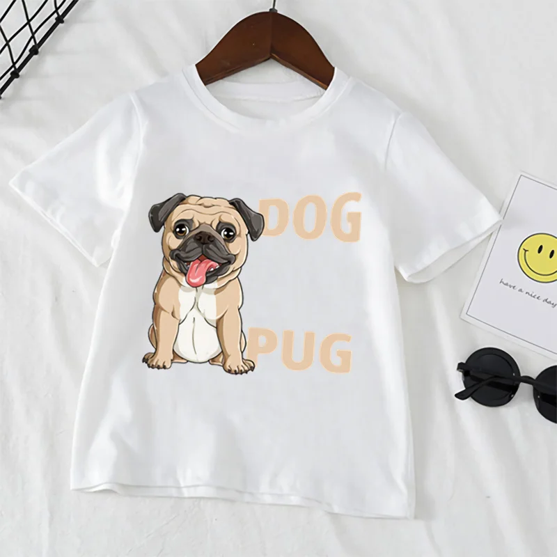 Детские футболки с рисунком мопса, роликовых коньков, Мультяшные животные, топы с коротким рукавом, модные забавные летние топы с милым принтом для мальчиков и девочек, YKP011
