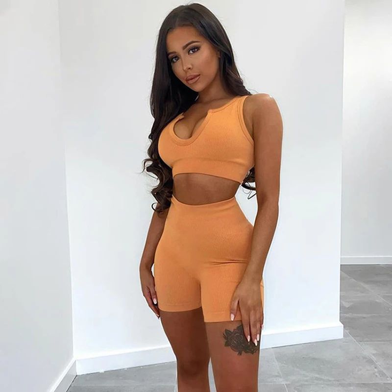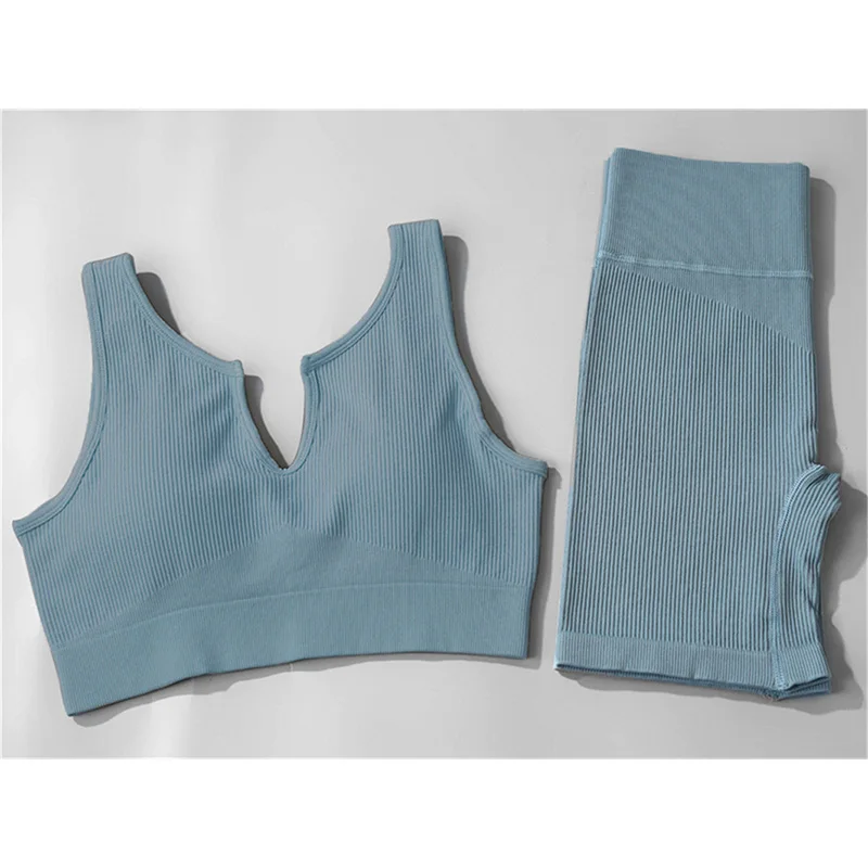 Костюм спортивный женский, трикотажный, бесшовный, с U-образным вырезом, одежда для фитнеса спортзала
