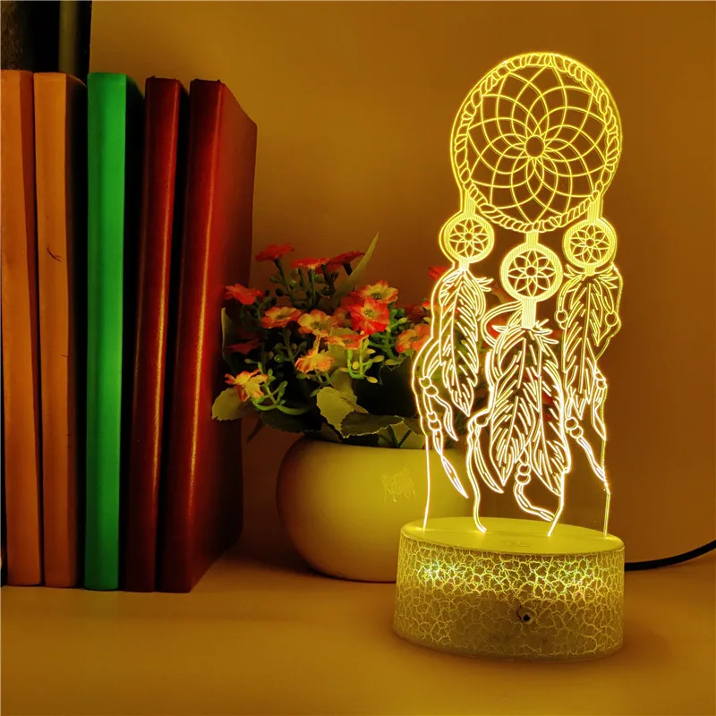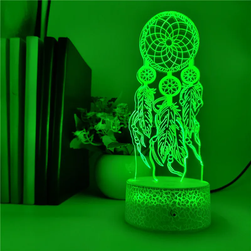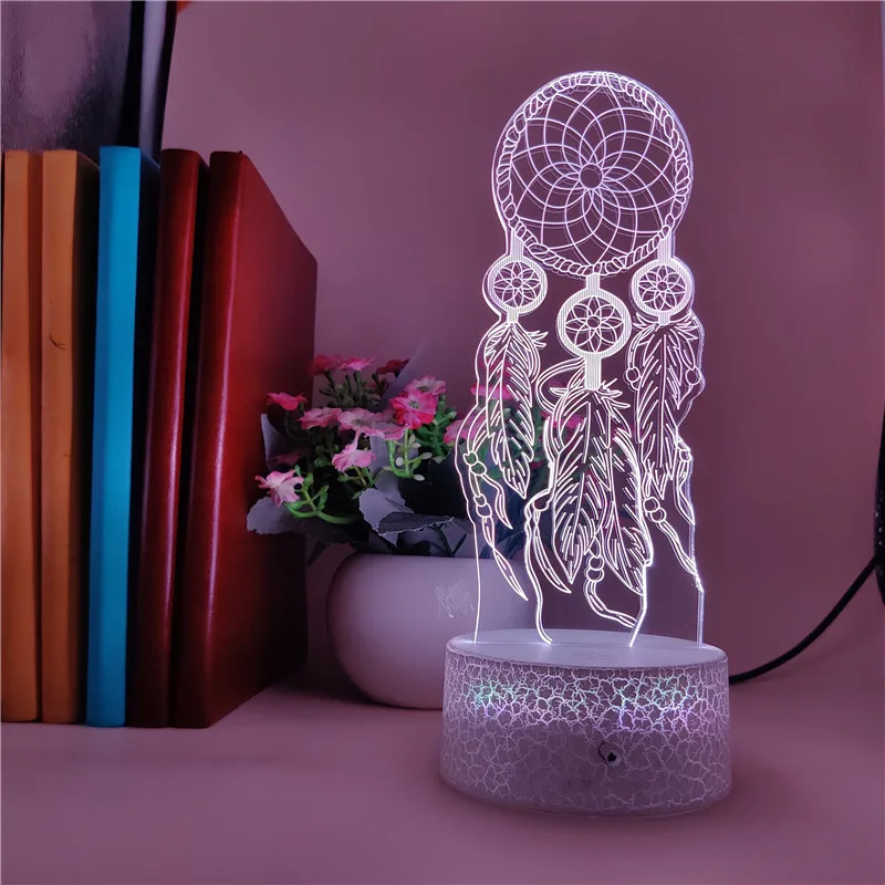 Креативный светодиодный ночник Ловец снов, 3D настольная лампа, акриловый ночсветильник, меняющий цвет, атмосферное украшение, основа с Bluetooth icon star icon star icon star icon star icon star