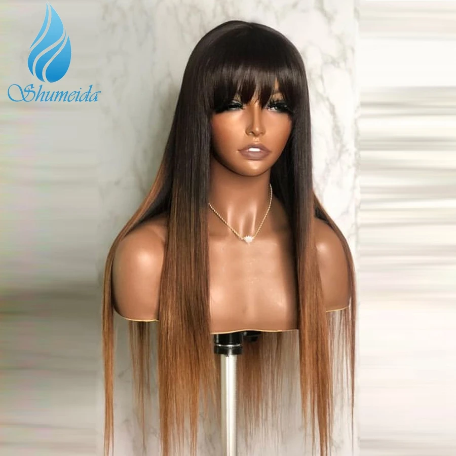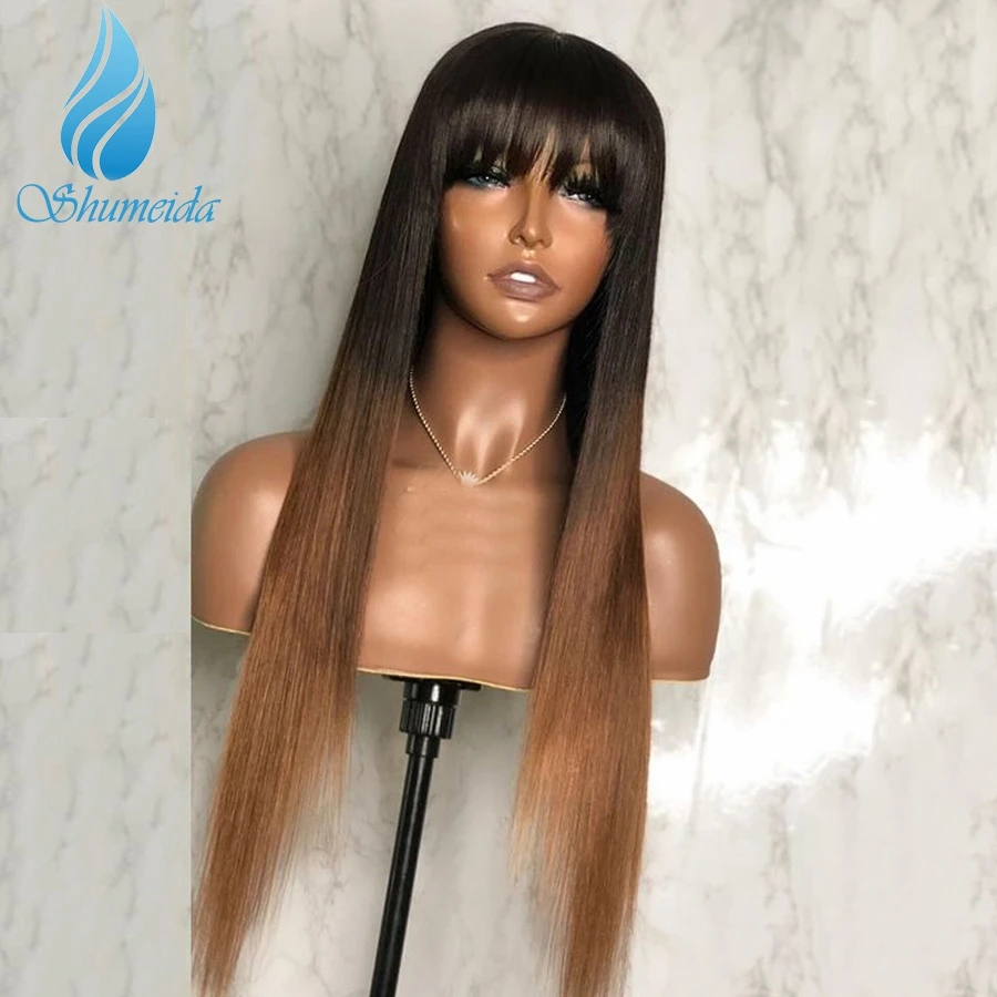 Парики Shumeida с эффектом омбре блонд, полноразмерные бразильские человеческие волосы Remy, длинные прямые волосы с челкой для черных женщин