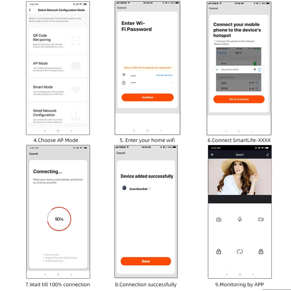 С новейшей технологией, когда Посетитель нажимает дверной звонок, ваш телефон получит уведомление приложения, вы можете видеть, слышать и говорить с кем-либо у вашей двери, даже Удаленная разблокировка через ваш смартфон везде, независимо от того, где вы находитесь, вы можете удаленно получить доступ к камере, чтобы увидеть Потоковую передачу в реальном времени и оставаться на связи