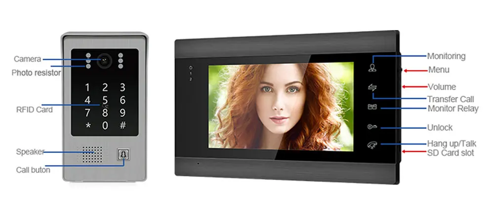 ♦Камера 720P♦13,56 МГц RFID карта + код разблокировки клавиатуры♦Поддержка разблокировки пароля♦ИК-светодиоды для ночного видения♦Регулируемый громкость внутренней связи♦Двусторонний Интерком♦ИК-датчик, Автоматическое включение/выключение ИК-светодиодов♦Простая установка и установка DIY♦Антиантивандальная панель из алюминиевого сплава♦IP65 к атмосферным воздействиям