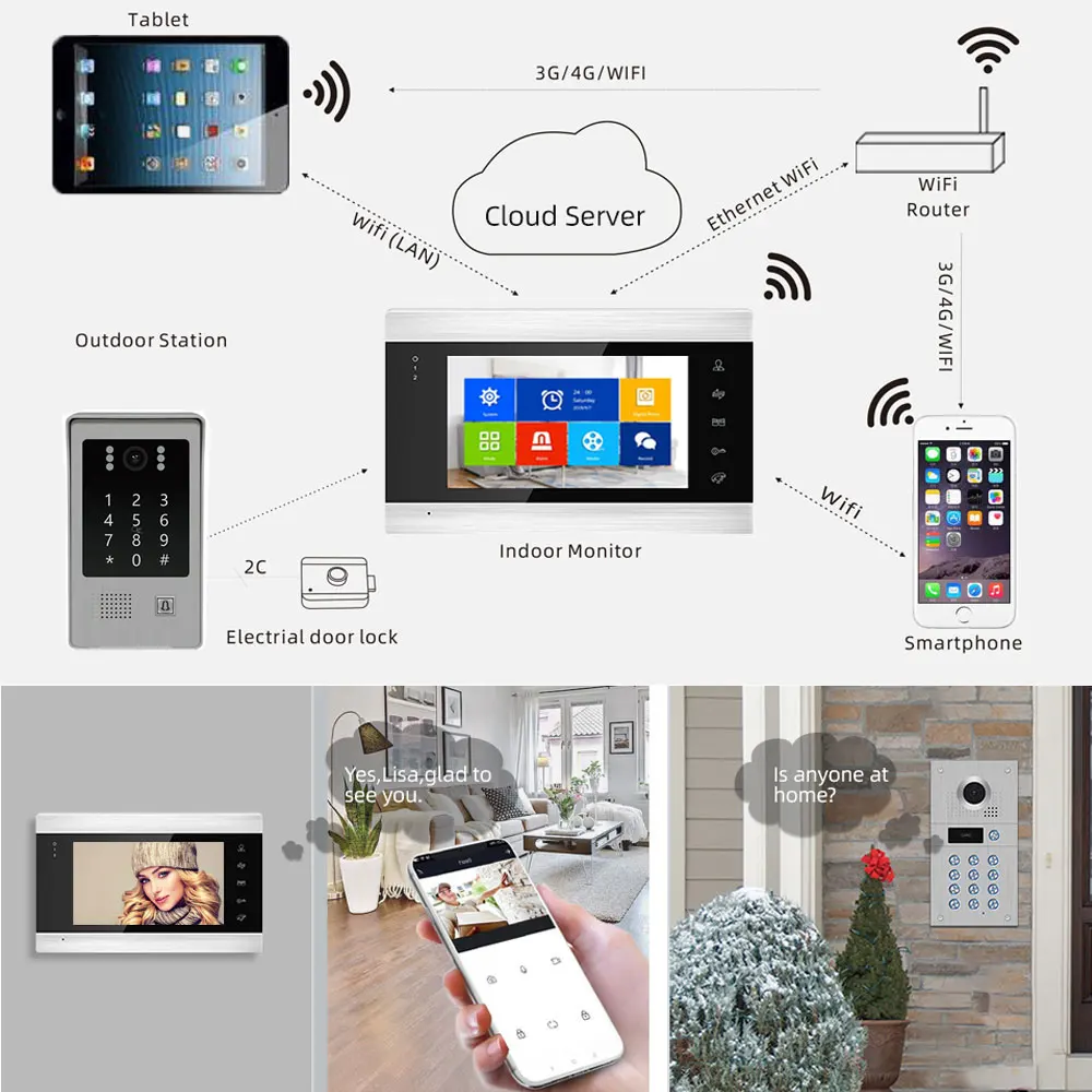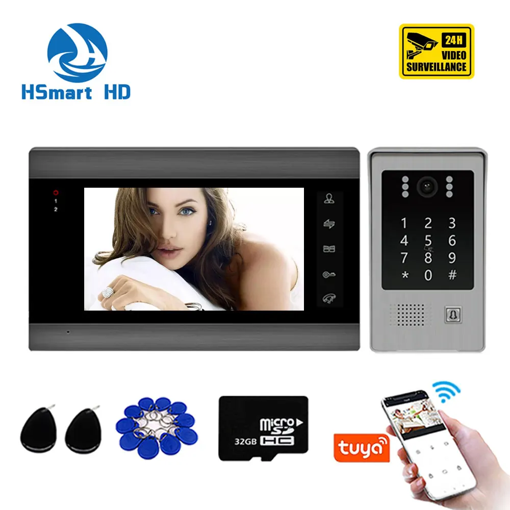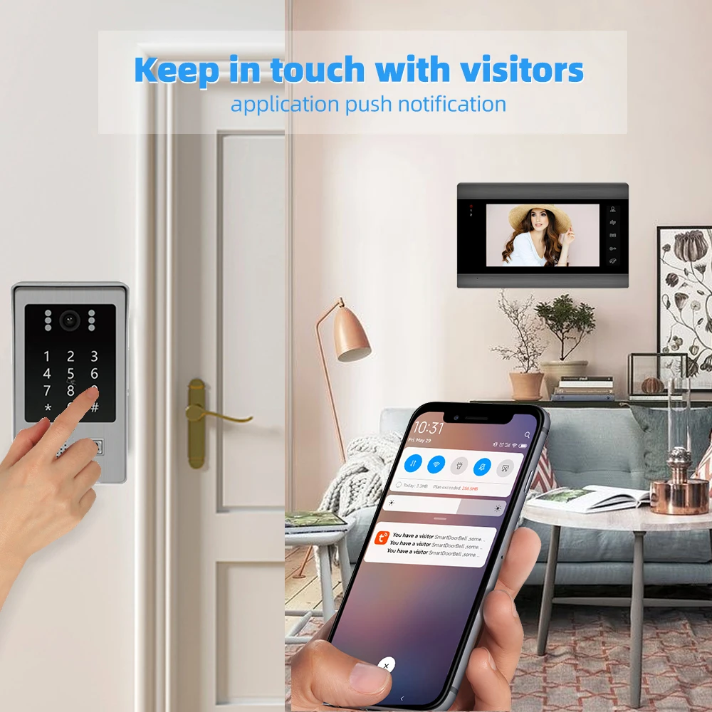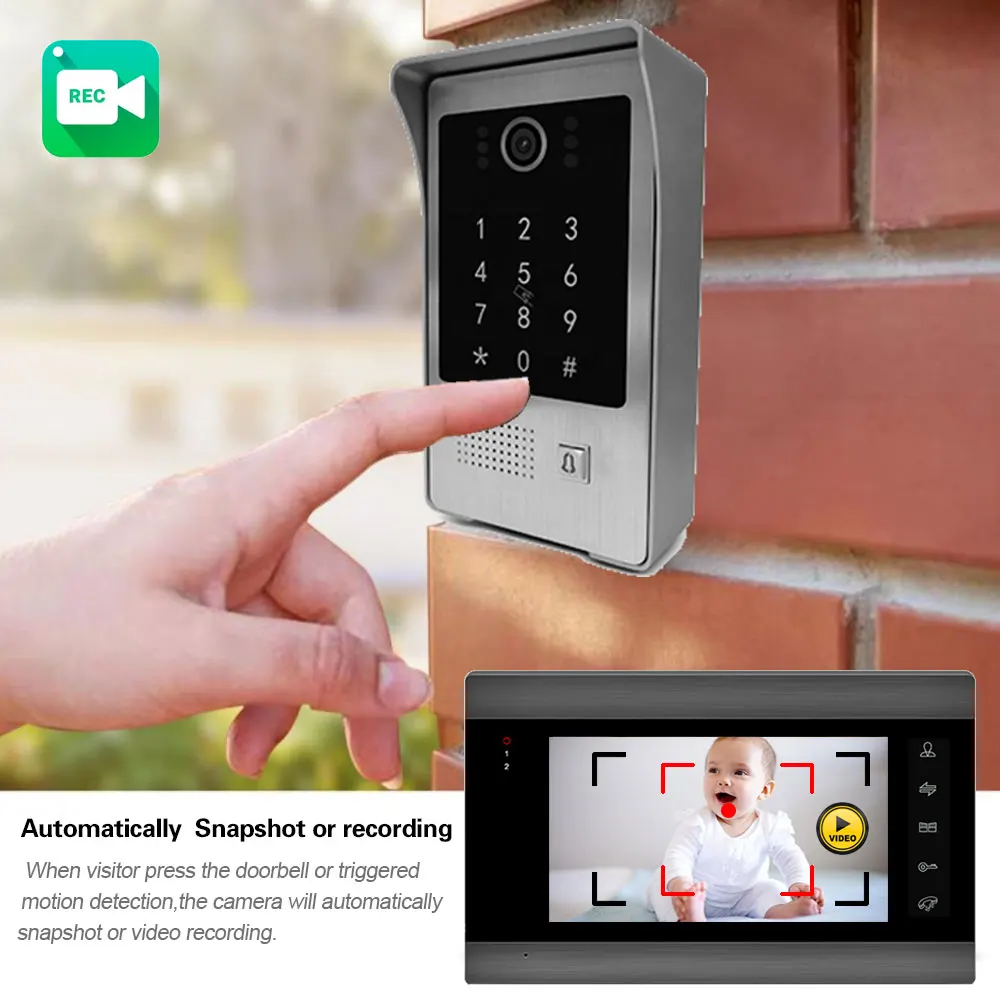 Видеодомофон с 7-дюймовым экраном и Wi-Fi, водонепроницаемое умное приложение, разблокировка с помощью RFIC-кода, дверной звонок с камерой