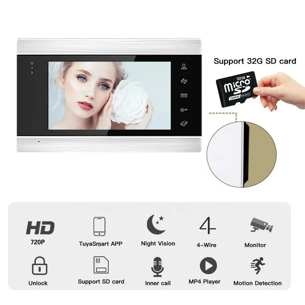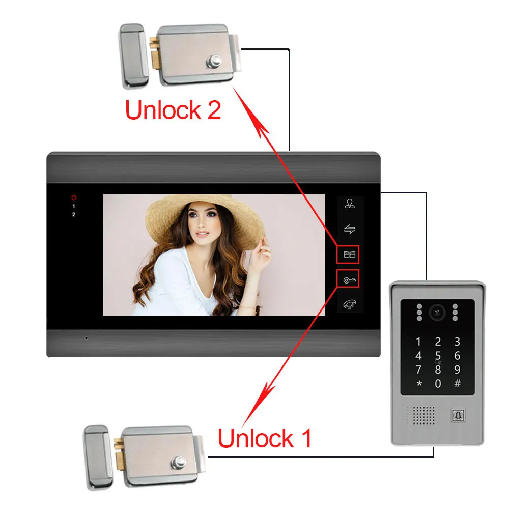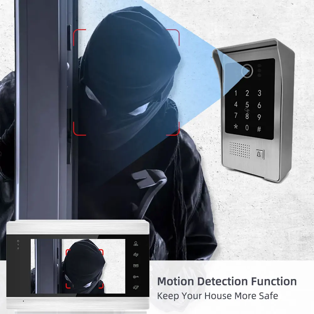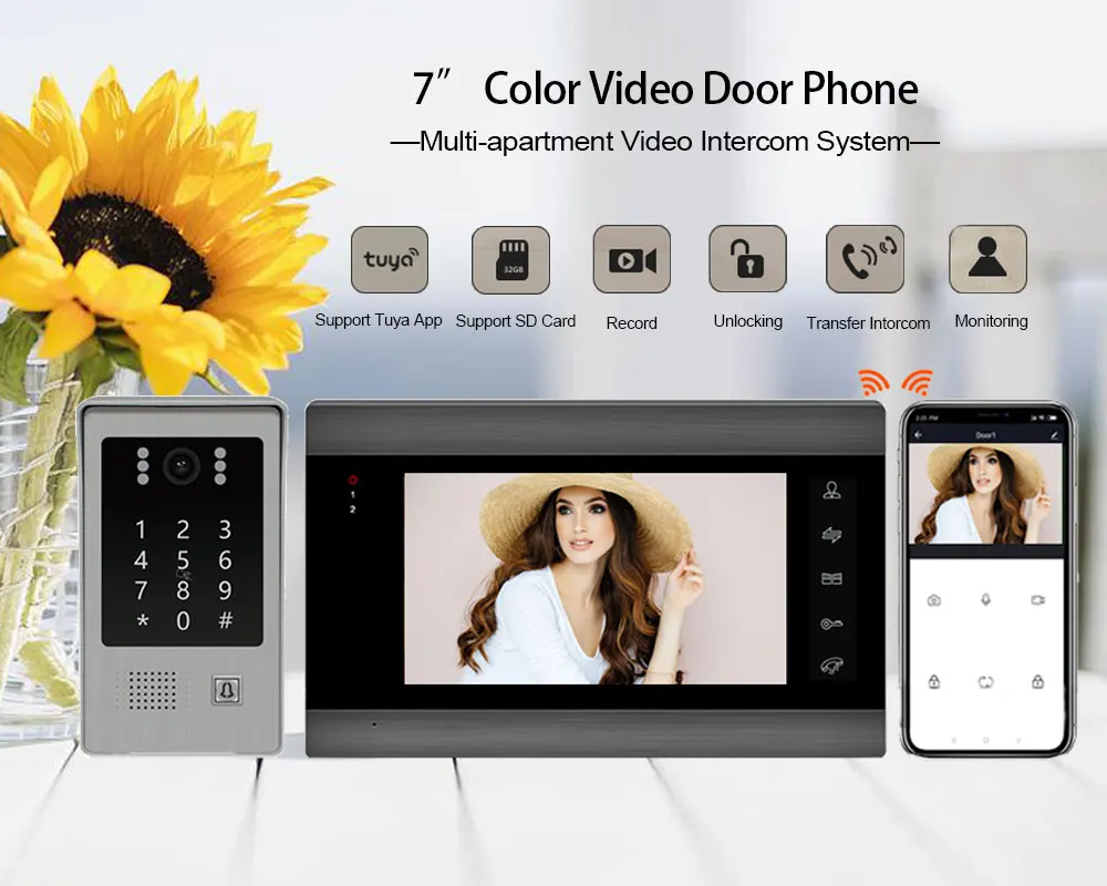 Видеодомофон с 7-дюймовым экраном и Wi-Fi, водонепроницаемое умное приложение, разблокировка с помощью RFIC-кода, дверной звонок с камерой