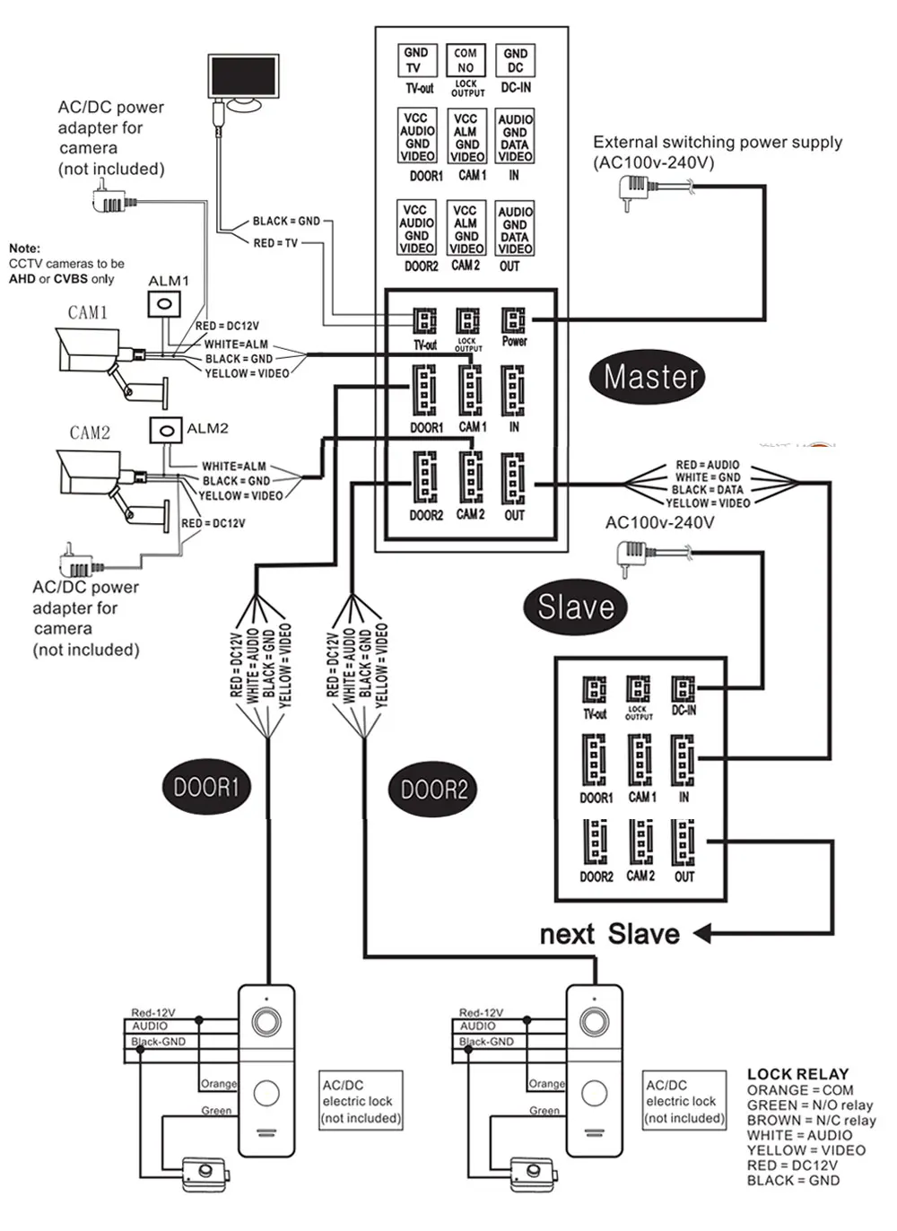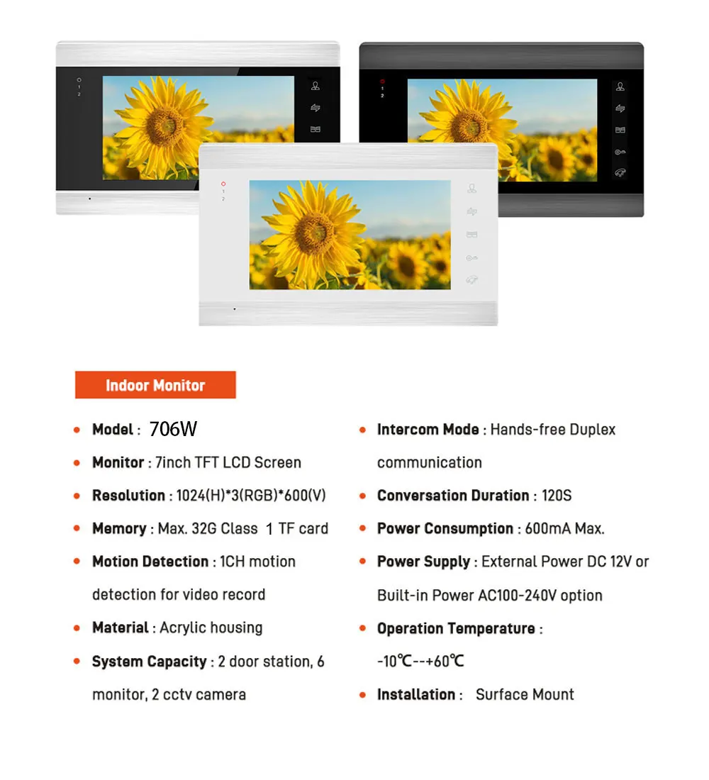 Поддержка монитора для подключения 6 внутренних мониторов, 2 замков, 2 панели вызова и 2 камеры наблюдения в основном, этот товар является бесплатным и доступен для двусторонней связи. Он поддерживает связь между внутренним монитором и наружной камерой, но также поддерживает связь между монитором и монитором. Вы не всегда спустились вниз, откройте дверь после установки нескольких домофонов
