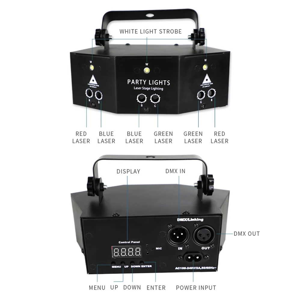 Совершенство:7 канал DMX512.15 Вт Светодиодный светильник.6 линз с двойным лазером RGB.Богатые функции дистанционного управления.Интеллектуальный дизайн управления звуком.Эффект программы: лучевая Оптическая сеть, эффект точки останова, эффект сломанной ручки, имеет 12 моделей.Он может быть независимо от цвета лазера с дистанционным управлением, скорости вращения двигателя, скорости стробоскопической лампы и т. д.1. Мощность напряжения: 100-220 В переменного тока @ 50-60 Гц.2. Номинальная мощность: 25 Вт (макс.)3. Светильник источник: Red-200mW @ 650nm, Green-100mW @ 532nm, Blue-200mW @ 450nm.4. Светодиодный источник: 3 шт. 5 Вт белый светодиодный светильник.5. Расстояние дистанционного управления: 5-10 метров (без экранирования)6. Режимы воспроизведения: пульт дистанционного управления, звук, авто, DMX, Master-Slave.7. Графика и эффекты: Массив оптической сети и 12 моделей.8. Время разогрева: 2-8 мин.9. Рабочая среда: 0-40 °C.10. Размер изделия: 19x6,5x8,5 см/6.7x2.5x3.3дюйм.11. Размер посылка: 26x17x16 см/10.3x6.7x6.3дюйм.12. NW: 0,85 кг, GW: 1,2 кг.Посылка:1x9 Лазерное освещение для глаз,1 x ИК-пульт дистанционного управления (не включает батарею CR2025),1 x линия электропередачи,1 Руководство пользователя (на английском языке).Применимое место:DJs, группы, бары, пабы, клубы, катки на роликовых коньках, KTV, семейные вечерние, дни рождения, торжества, свадьбы, фестиваля, торгового центра, магазина, магазина и других назначенных мест.Примечания:1. Пожалуйста, просмотрите все описание перед покупкой.2. Видео и фотографии были сделаны под темной областью с эффектом тумана.3. Разрешение видео может показаться тусклым, но реальный эффект будет лучше, чем видео, которое вы видели.4. Товар будет сокращен, если он будет работать долгое время, например, 5 часов (выключить в течение 15 минут, когда он работал в течение нескольких часов).5. Держите подальше от детей и не обращайте внимания на Лазерное освещение.6. Пожалуйста, соблюдайте руководство пользователя во время использования.7. Это нормально для небольшого шума, когда элемент работает, как он был применен с шаговым двигателем.