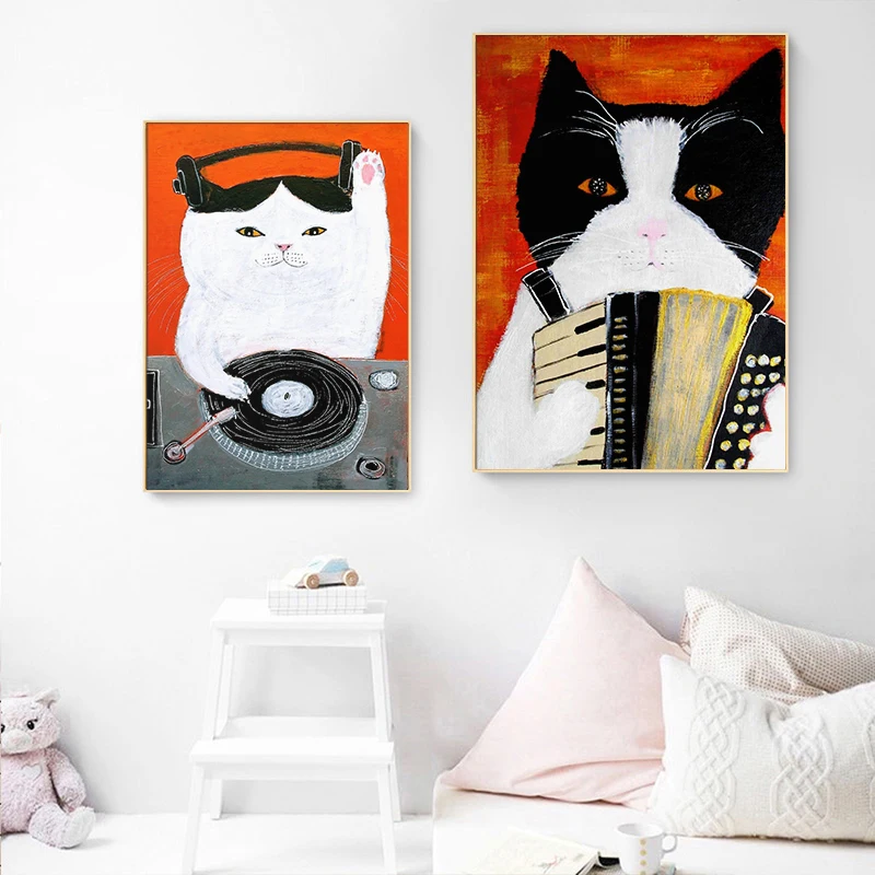 Мультяшный милый забавный кот, современный плакат и печать на холсте, картина для детской, Настенная картина для гостиной, детской спальни, домашний декор