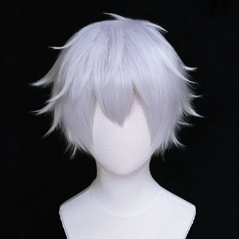 Парики для косплея из коротких серебристых термостойких синтетических волос с шапочкой и очками