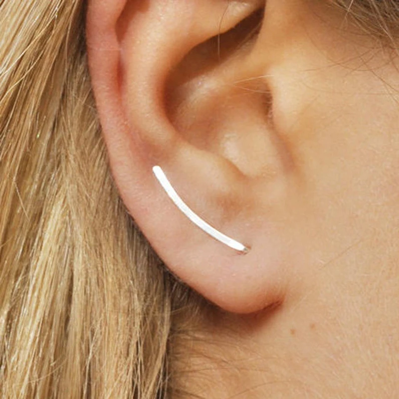 GS 925 пробы серебряные гладкие длинные линия уха альпинист, серьги со шпилькой, для Для женщин минималистский уха кроулер гоночный автомобиль для рок-шпильки для пирсинга ювелирные изделия