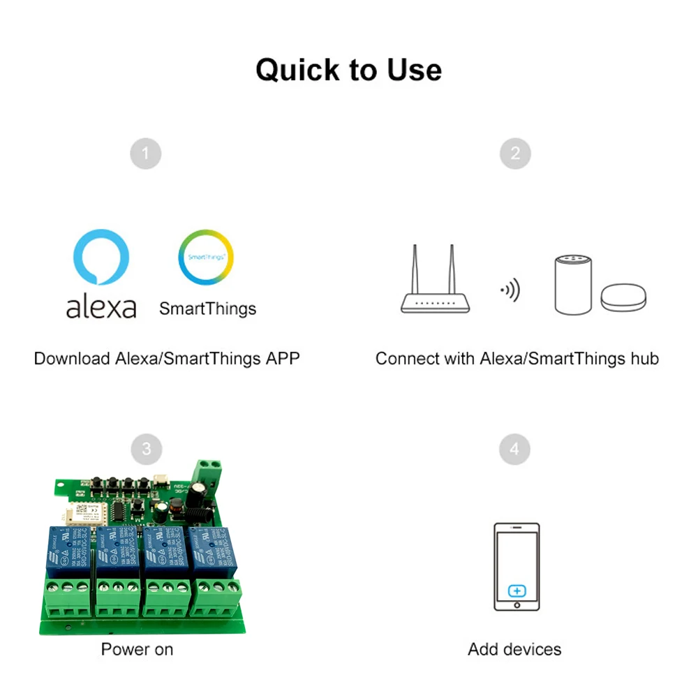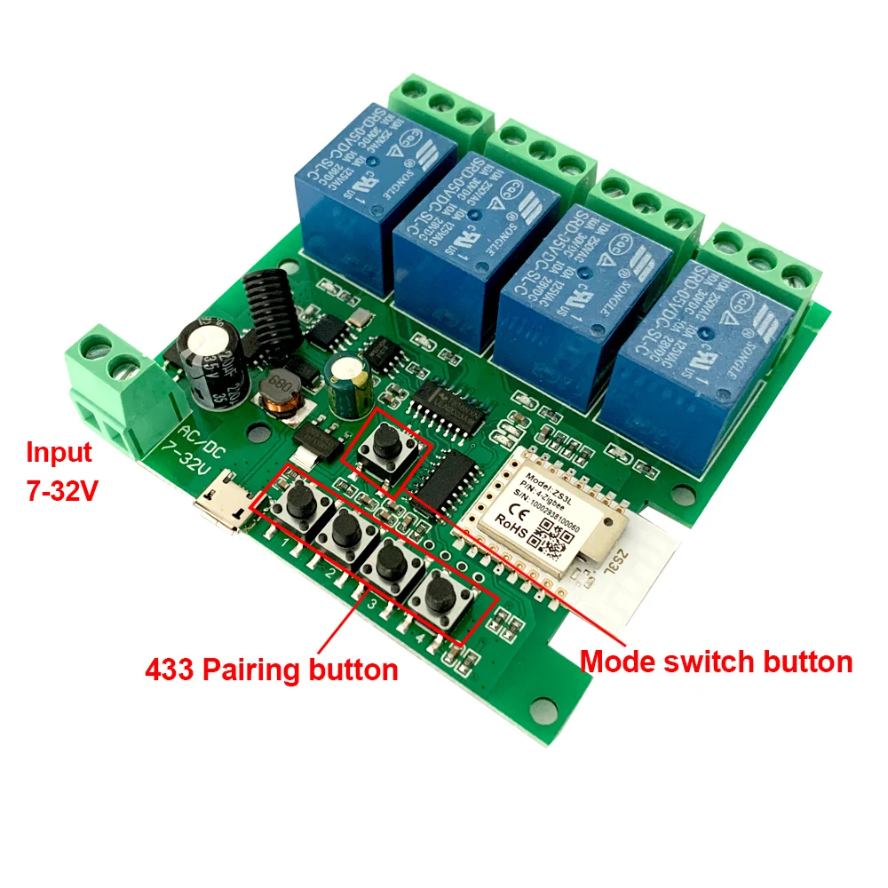 Модуль переключателя света Zigbee, 4 канала, 51232 В постоянного тока, RF433, 10 А, работает с Alexa Google Assistant,Tuya Smart Life