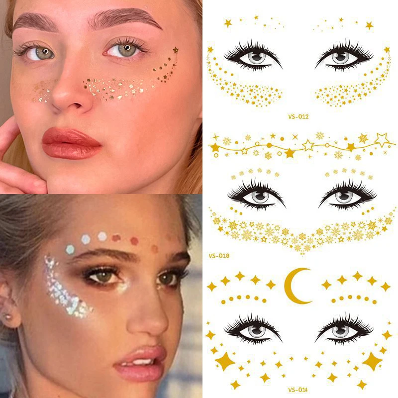 Новая бронзовая тату-наклейка музыкальный фестиваль золотое лицо Временные татуировки водостойкие веснушки макияж наклейки для глаз оптовая продажа
