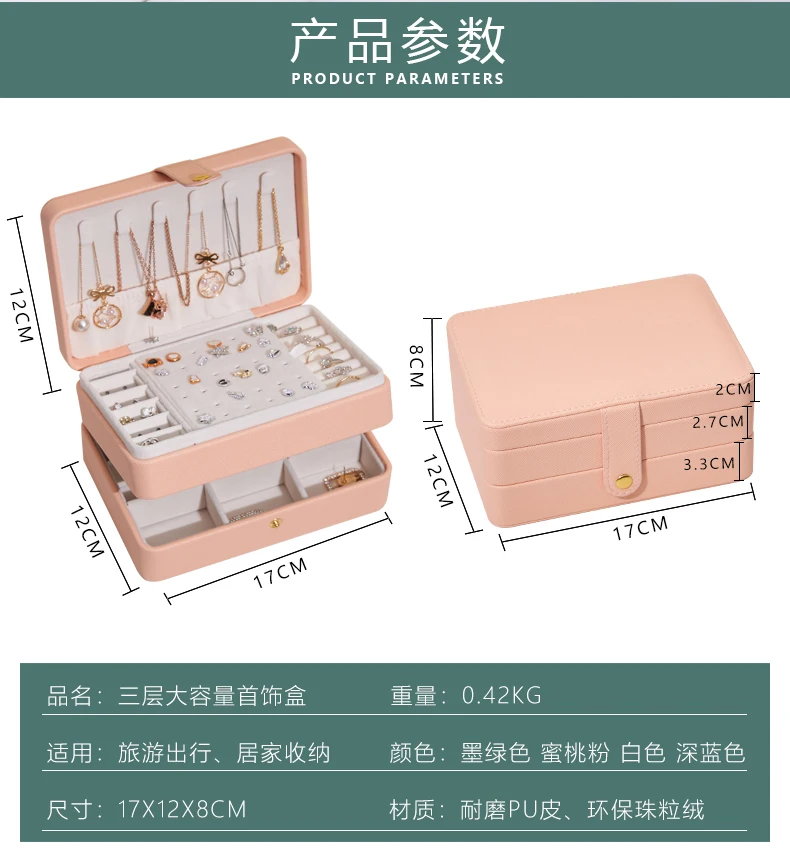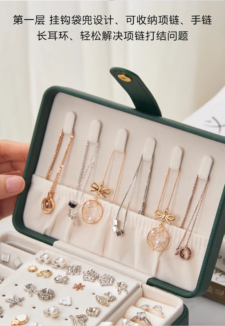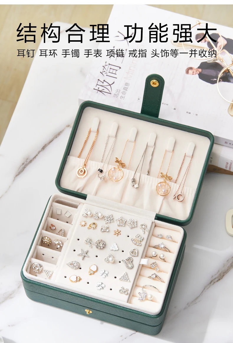 Женская двухслойная шкатулка для ювелирных изделий, практичный зеле...