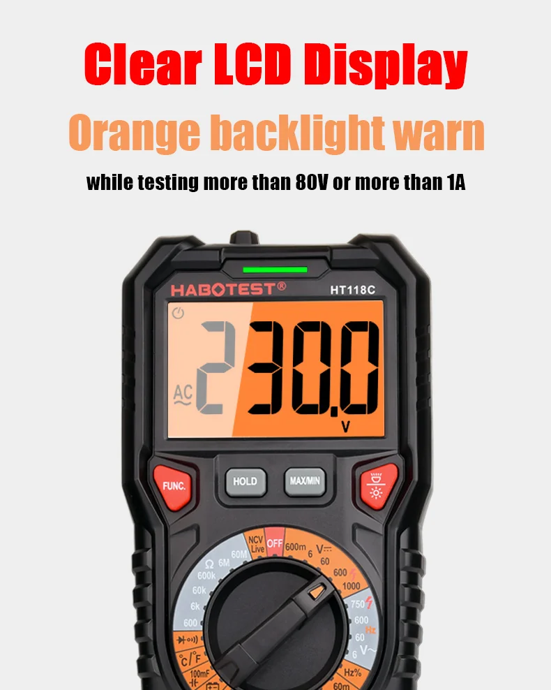 Цифровой мультиметр HABOTEST HT118, высокоточный, 6000 отсчетов, 1000 В переменногопостоянного тока, Ом, Гц, Бесконтактный индикатор напряжения