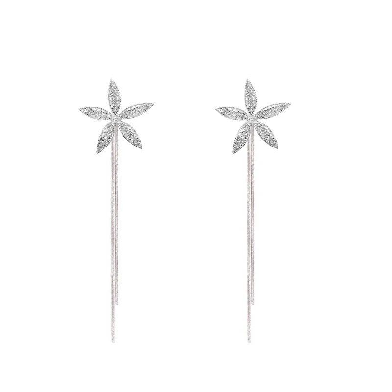Темпераментные трендовые серьги с пятилепестковым цветком и бриллиантами с длинной кисточкой 2021