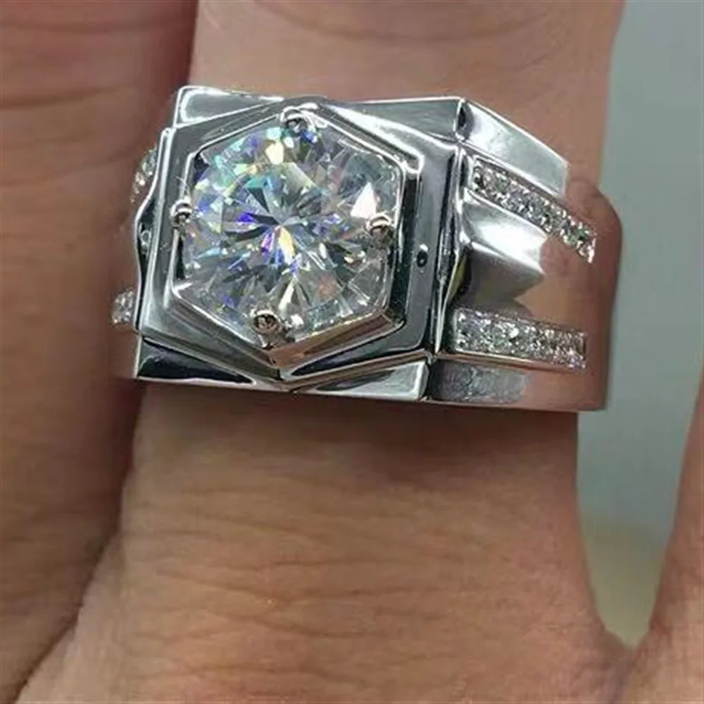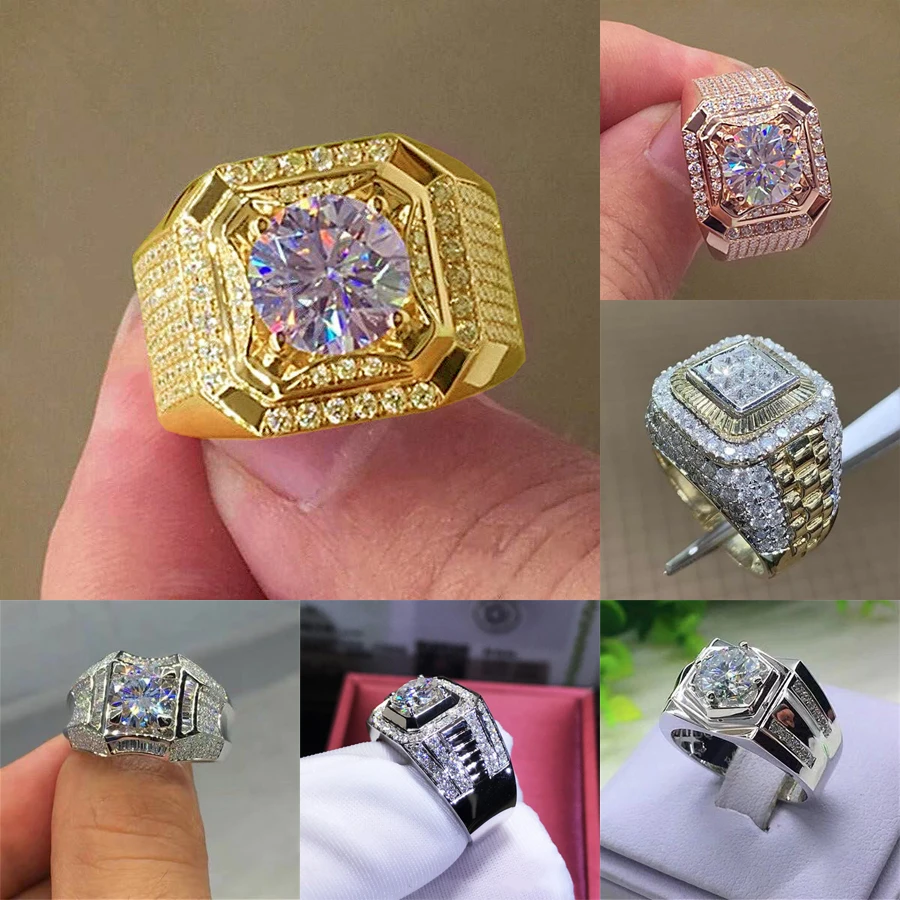 Роскошное Золотое большое кольцо с белым кристаллом 2,4 карат для мужчин и женщин в стиле хип-хоп микро-паве CZ стразы кольцо панк-рок Байкерская Вечеринка ювелирные изделия