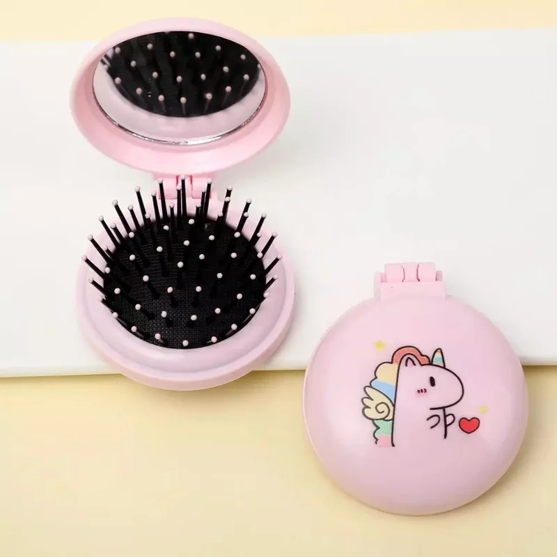 Складная Расческа с зеркалом, массажная расческа в виде единорога д...