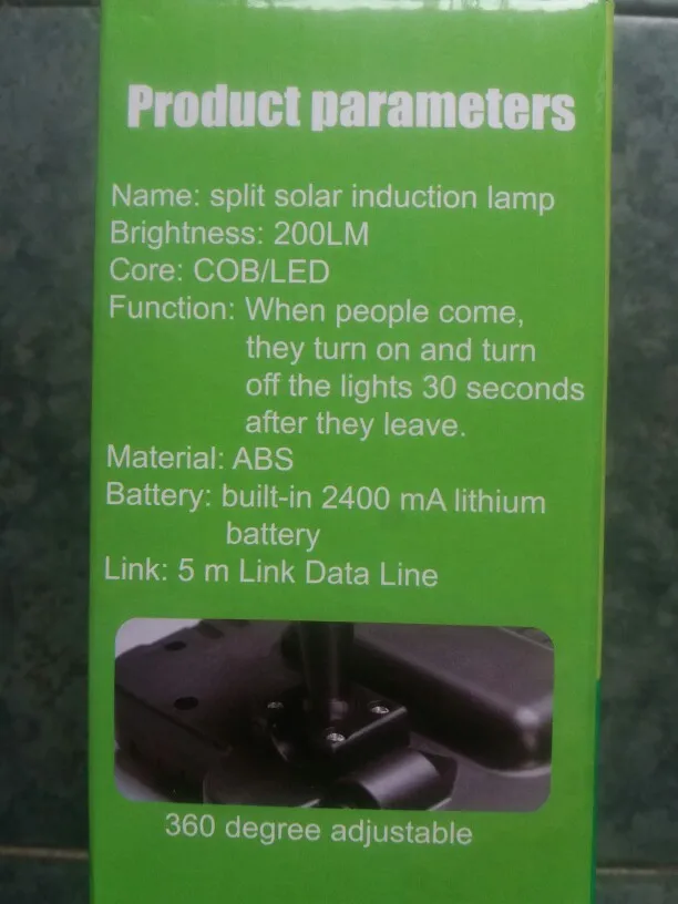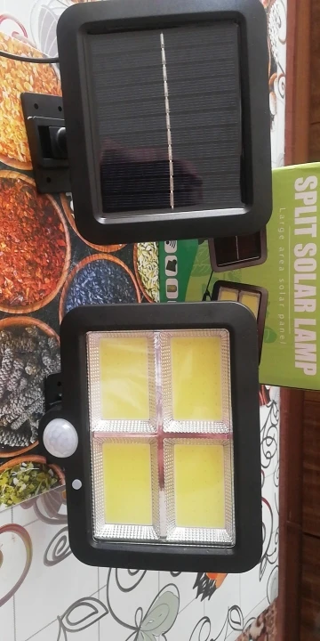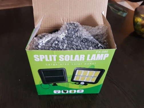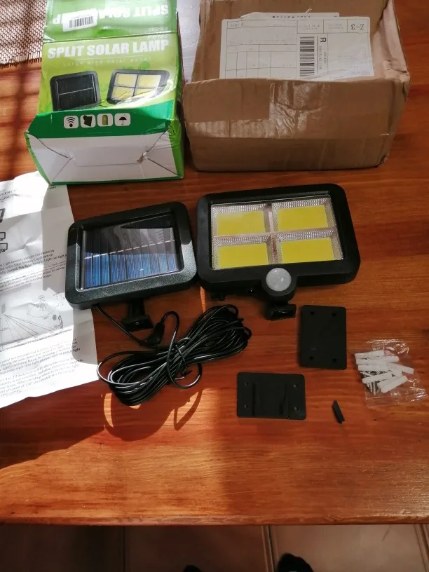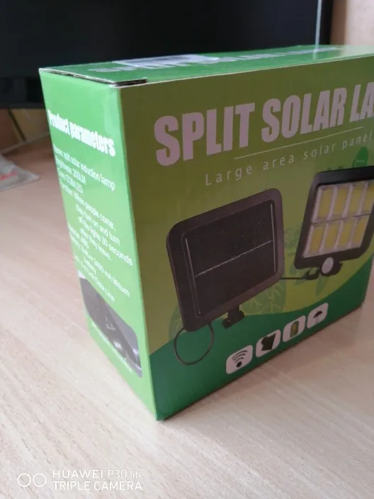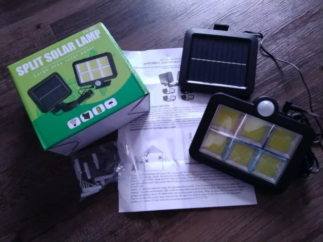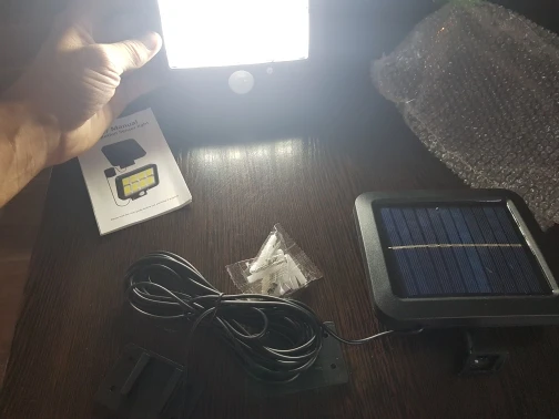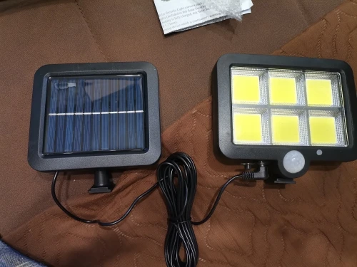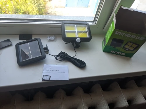 Светодиодный светильник с солнечной зарядкой, с разделенными блоками зарядки и освещения. Оба блока оборудованы кронштейнами, с регулируемым наклоном. Кронштейны можно крепить, крепеж прилагается. Дочь протестирует на отдыхе для освещения палатки. Пока проверили работу - быстро реагирует на появление человека, выключается секунд через 30. Светит в комнате даже днем. Нет выключателя, при необходимости можно выдернуть из блока освещения штекер, соединяющий его с блоком зарядки. Но, понятно, что это не очень полезно для прибора. Светодиодов 120, в палатке можно будет даже читать или есть. Шнур длинный, сами не измеряли, в описании - 5 метров. Есть инструкция на английском языке. Упаковка - посылочная картонная коробка, а в ней - красочная картонная коробка для товара, на которой нужная информация. Такое подарить не стыдно! Доставка быстрая, в Ростов-на-Дону за 10 дней, отслеживалась. Благодарю продавца за товар и качественную упаковку. Мои искренние рекомендации!!!