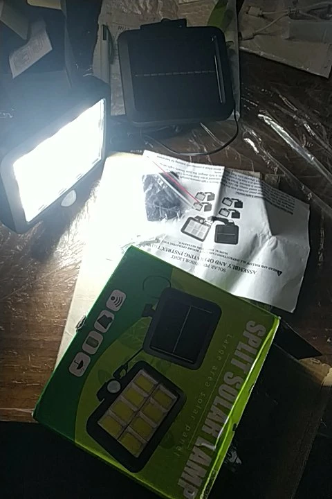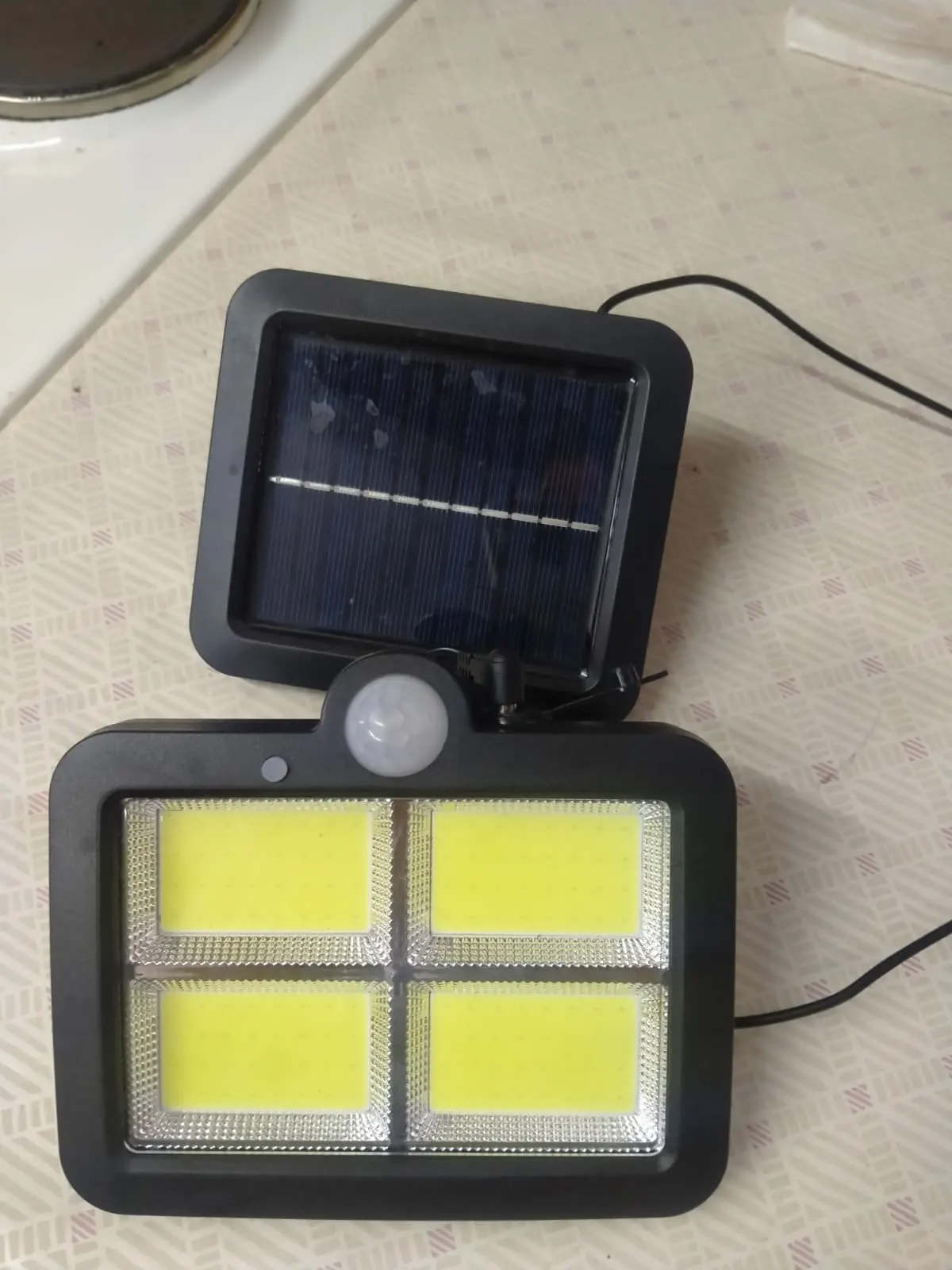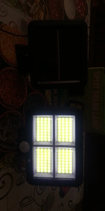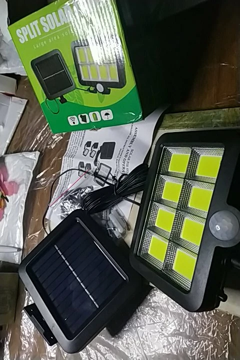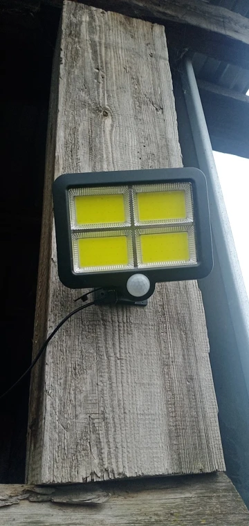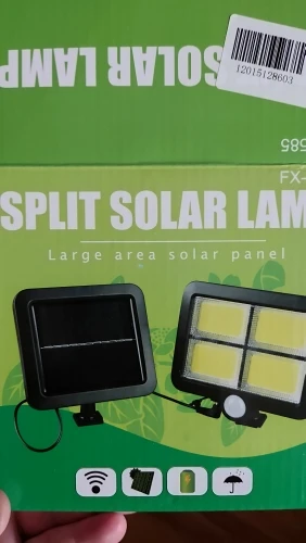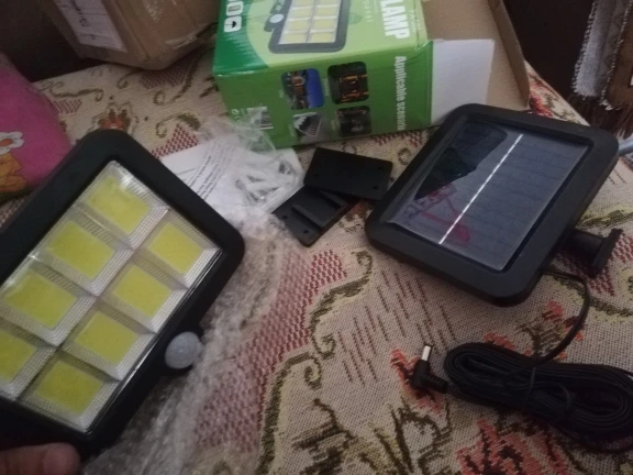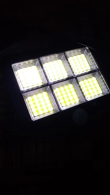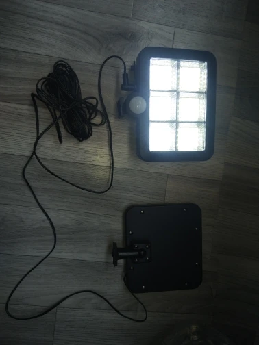 Прожектор работает. Есть датчик движения и выключение по освещённости при подключении солнечной батареи, несколько режимов яркости. Модель на 120 led светит не очень ярко, но достаточно чтобы осветить небольшую рабочую зону или тёмный проход, чтобы не сломать ноги. Доставка очень быстрая, всё пришло целое, не разбитое, спасибо продавцу за двойную коробку и нашей почте, за то что не играли посылкой в футбол!