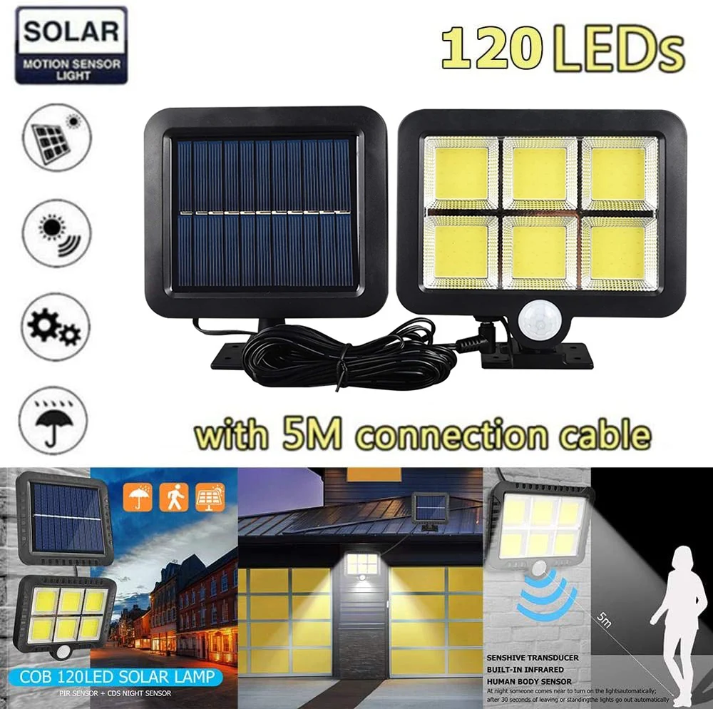 Солнечный светодиодный светильник 120Led COB Солнечный Прожектор s открытый светильник светодиодный с датчиком движения аварийная дорожка водонепроницаемый Солнечный садовый светильник