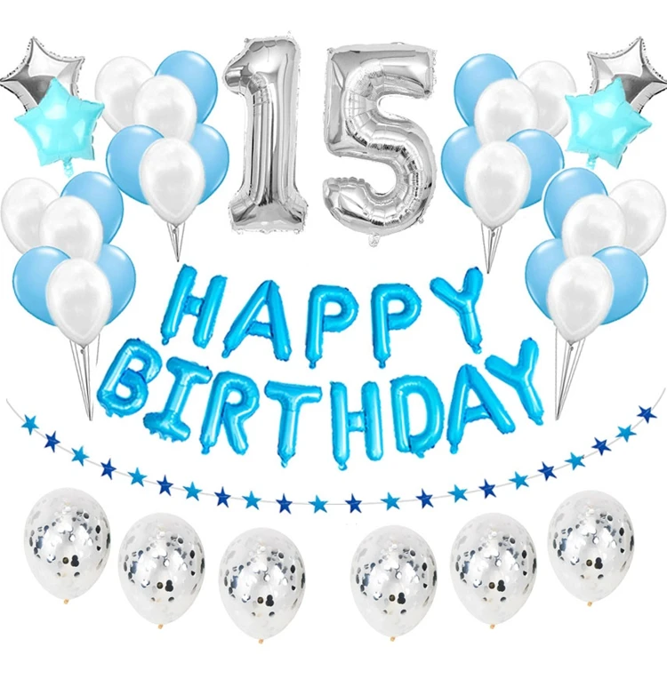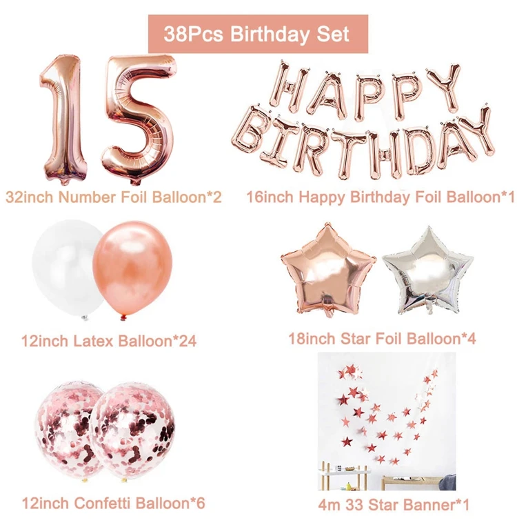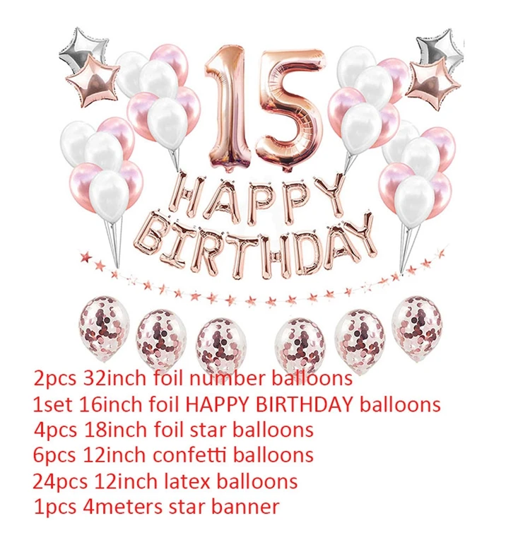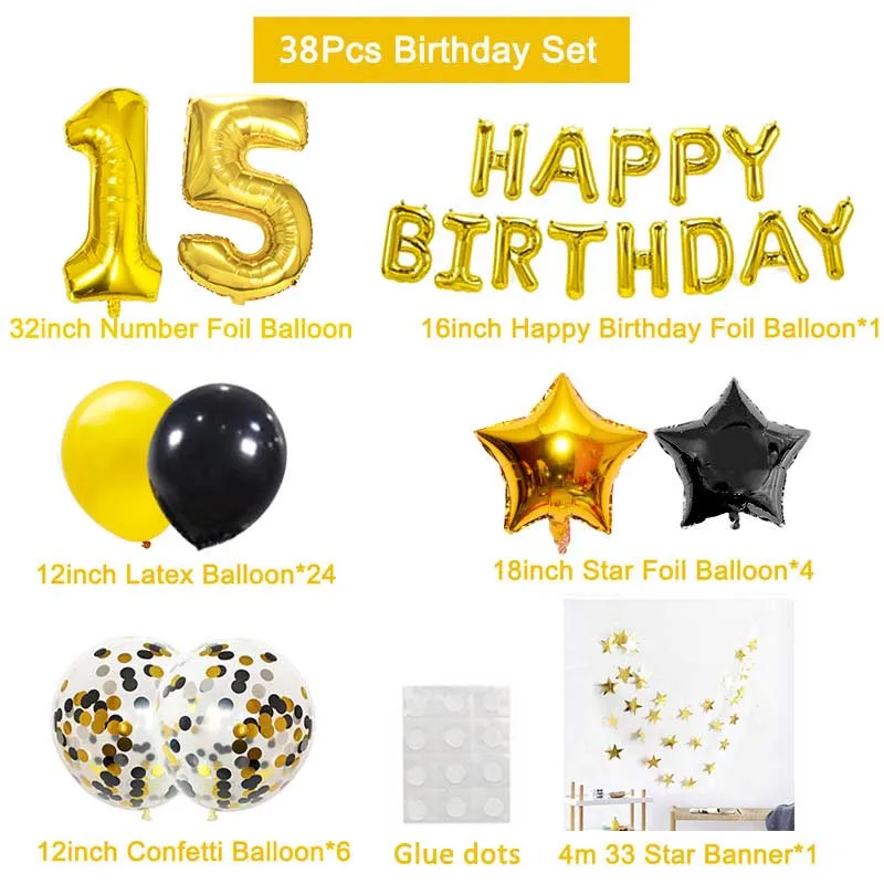 38 шт. золотистый и черный воздушные шары 15th Happy День рождения украшения 15 лет пятнадцать мальчиков и девочек 51 51st мужские и женские расходные материалы