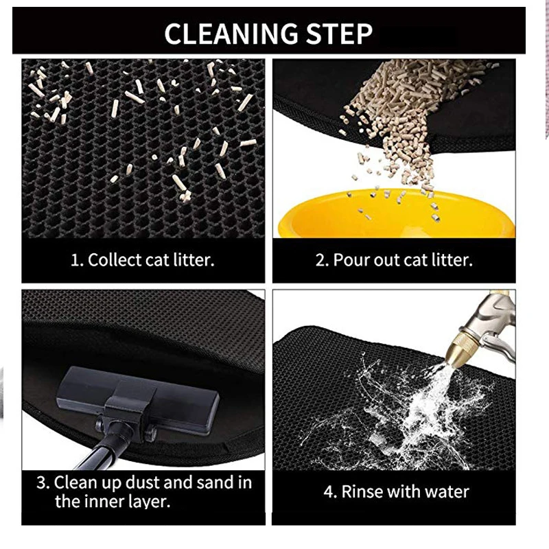 1. Изысканная стеганая кромка, толстая подошва, компактное качество изготовления, долговечное качество.2. Водонепроницаемый базовый слой предотвращает протекание воды и мочи на пол.3. Подходит для экологически чистых и высокоэластичных пенопласта EVA, соты для легкого сбора песков.4. Двухслойный Траппер для кошачьих туалетов для улавливания мусора из кошачьих лап и ящика для мусора поможет вам сэкономить время очистки и стоимость песков.5. Легко чистить, просто вылейте мусор через открывающийся карман.