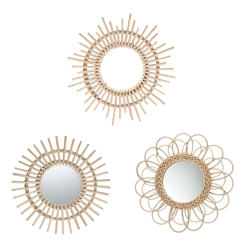 Инновационный художественный декор из ротанга, круглые Висячие зеркала для макияжа