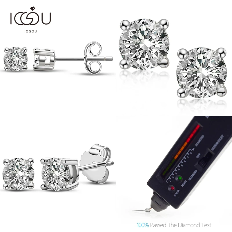Женские серьги-гвоздики из серебра 925 пробы с муассанитом, 3,04,05,0 мм