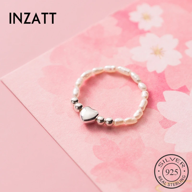 INZATT реальные 925 серьги из жемчуга и серебра циркона Сердце из бисера Регулируемые кольца для женские модные туфли в лаконичном стиле, хорошее ювелирное изделие, Богемные аксессуары